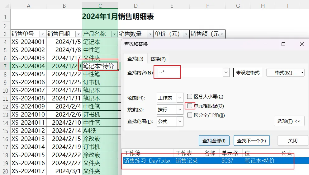 这样Excel就会查找真正的星号,而不是作为通配符使用。