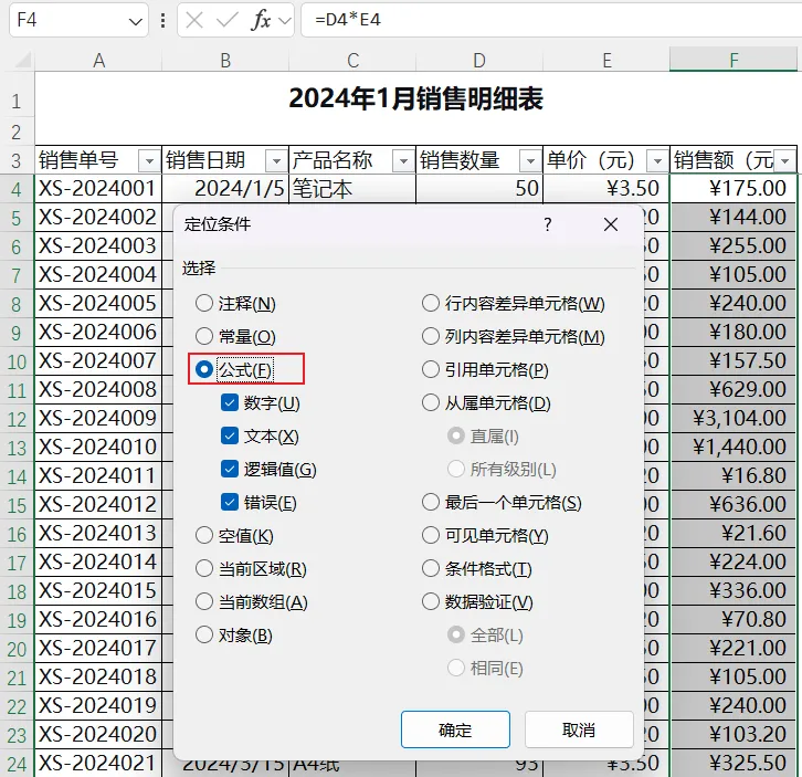 所有包含公式的单元格都被选中(比如F列的销售额)。你可以一次性给它们加粗、改颜色,或者保护起来。