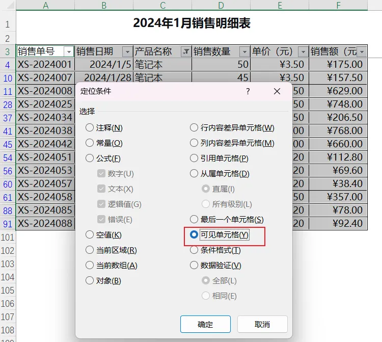 场景7:只复制可见单元格