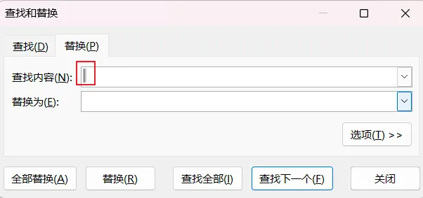先清空“查找内容”和“替换为”里的文本(如果有)。