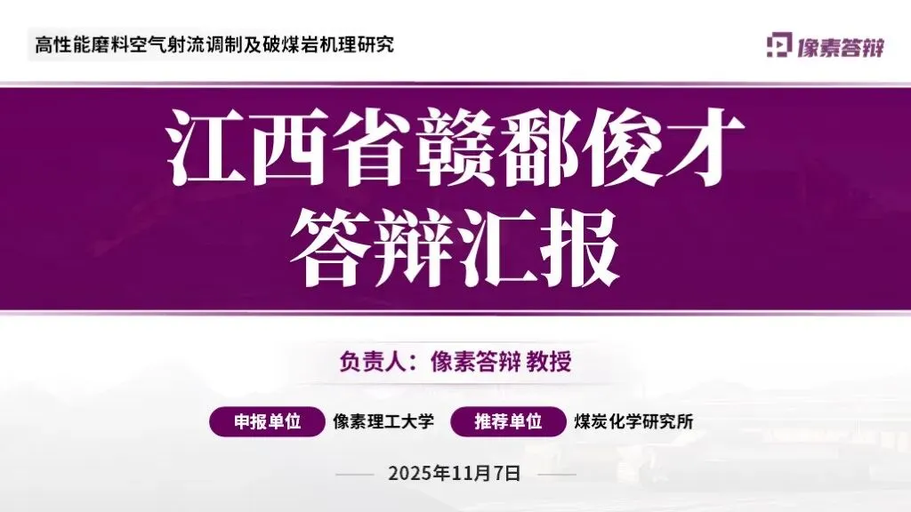 #博士##学术##科研##博导#答辩##教授##杰青##优青##优青答辩##答辩PPT##江西省赣鄱俊才答辩汇报PPT一高性能磨料空气射流调制及破煤岩机理研究项目#