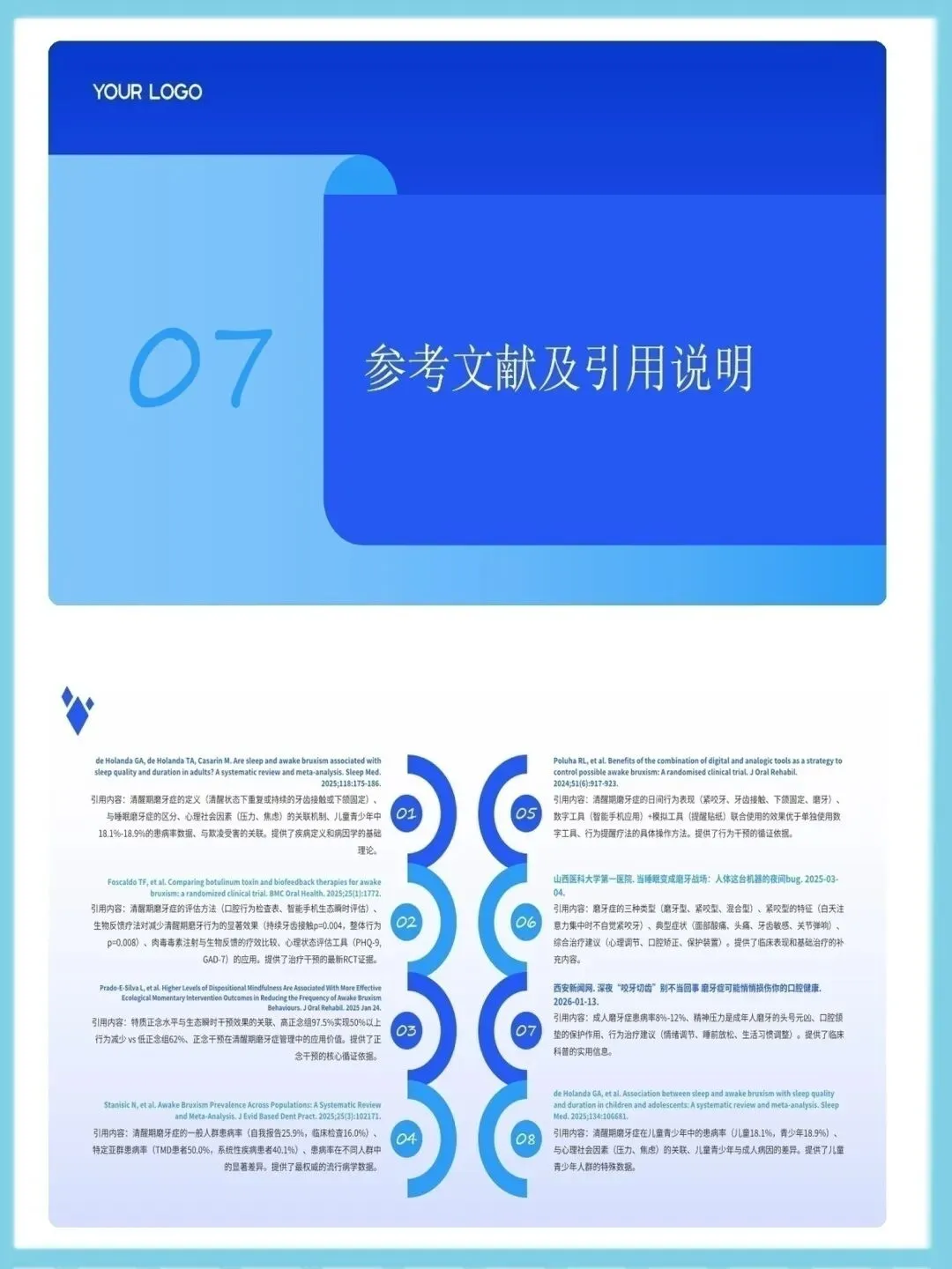 ><护理ppt模板>清醒期磨牙症护理查房带参考文献ppt模板,共39页(可编辑)