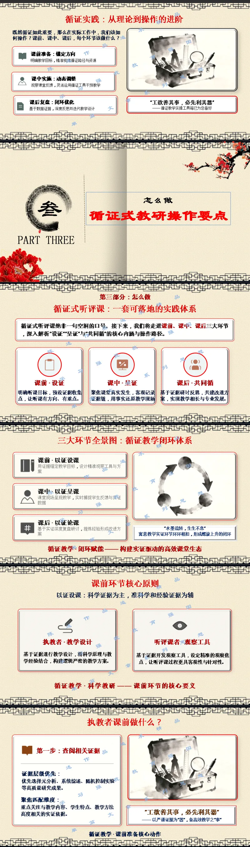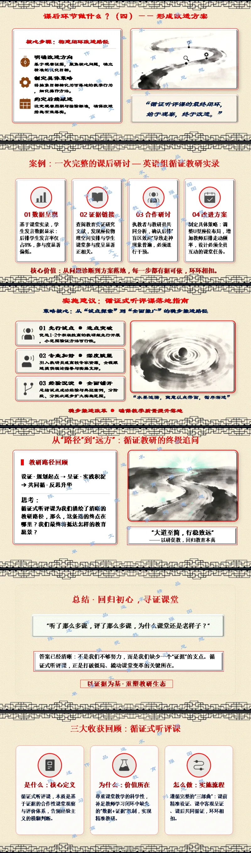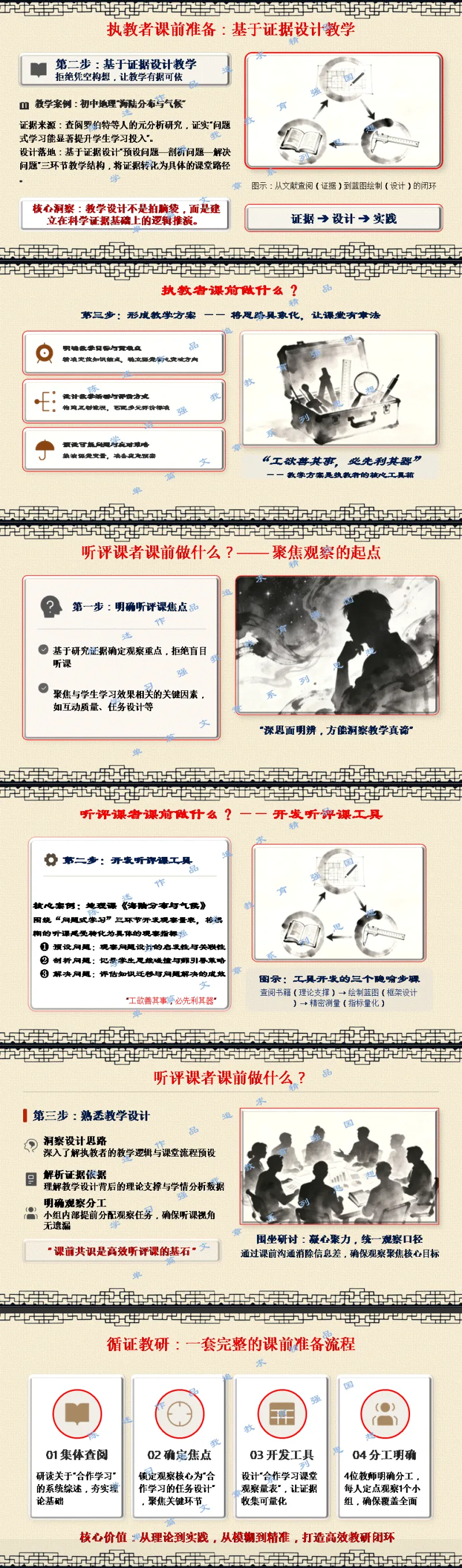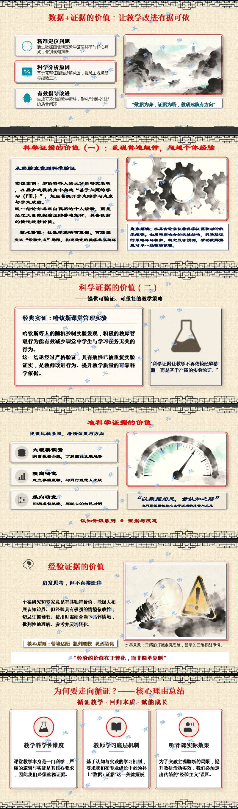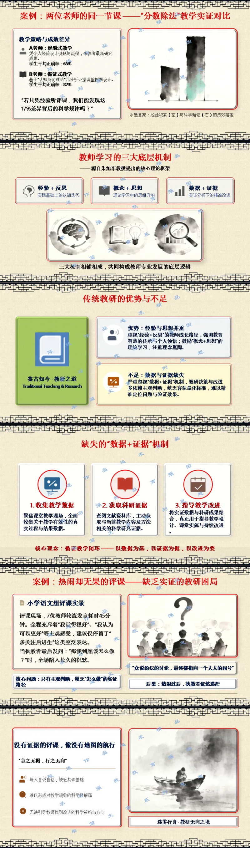 选择关注,关注陈述教学公众号,能力会提高。文末阅读一线校长更多原创内容。阅读提示:传统教研中,听评课往往依赖个人经验,陷入“我觉得”“我认为”的主观评价,重经验轻证据、重评价轻改进,导致研讨热闹却难有实效——大家各说各话,问题依旧,教师成长缓慢。从《【教研培训PPT】深耕常规课 做实真教研》到《【教研培训PPT】直面真问题 深化新教研》,我们一步步探寻教研的实效与深度。而今,《传统教研你讲我听大家评,创新教研设证呈证共同循》将教研改革推向核心——让“经验”与“证据”握手,让“评价”与“改进”同行。本课件聚焦循证式听评课,提供一套可操作、可复制的实践路径,助您从“我觉得”走向“证据表明”,让每一次听评课都成为教师专业成长的有力支点。