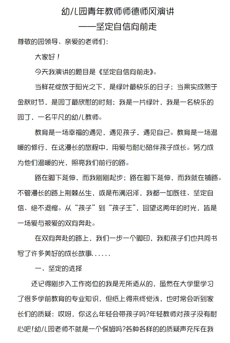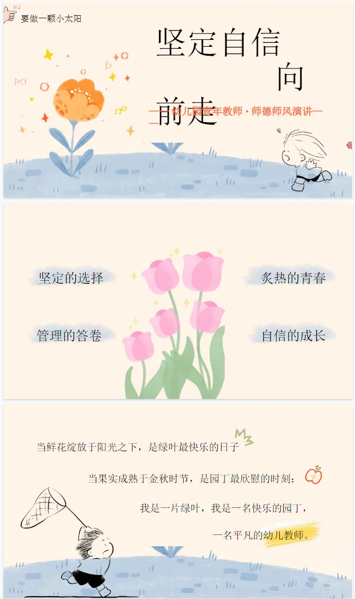 >幼儿园师德师风演讲《坚定自信向前走》ppt+演讲稿!