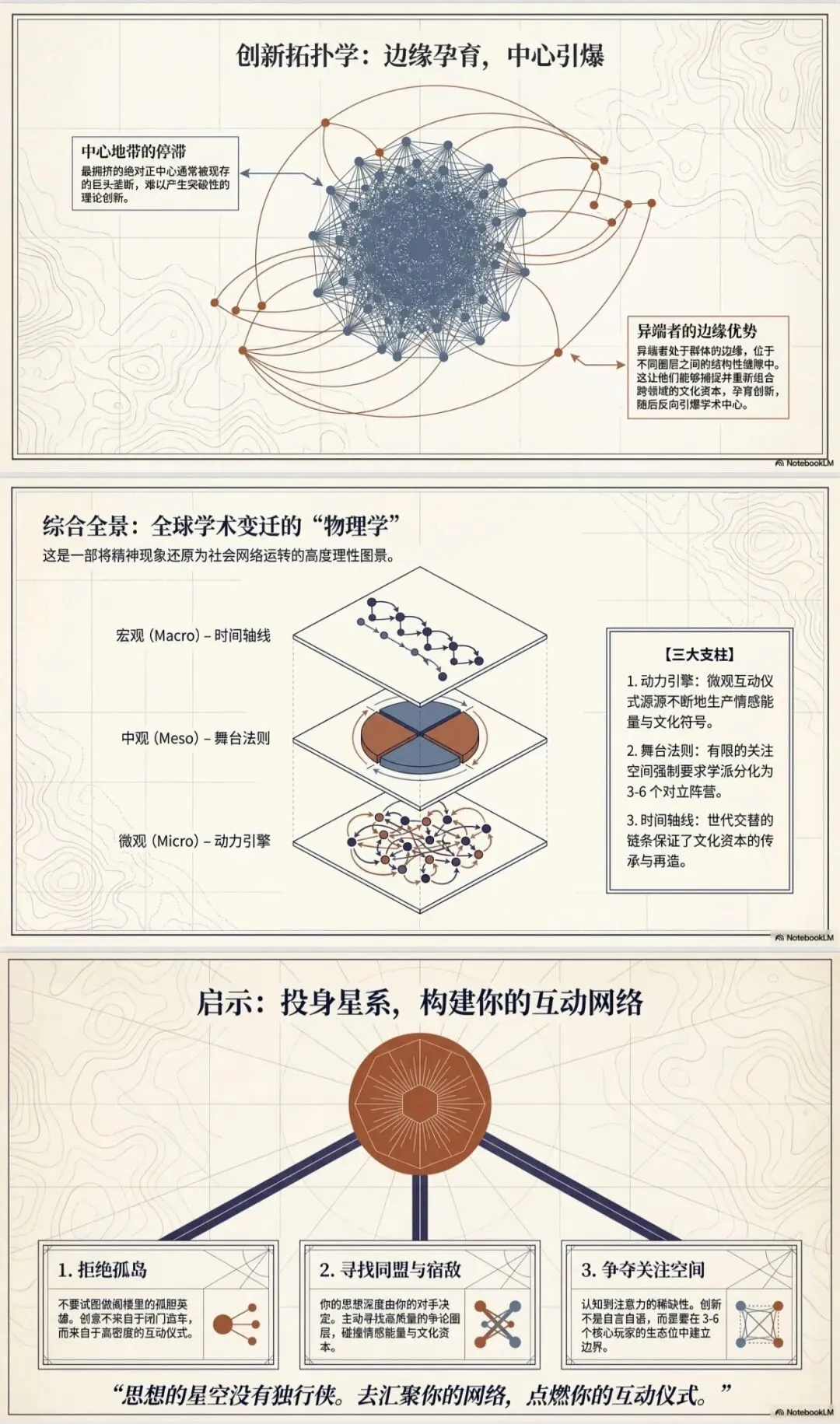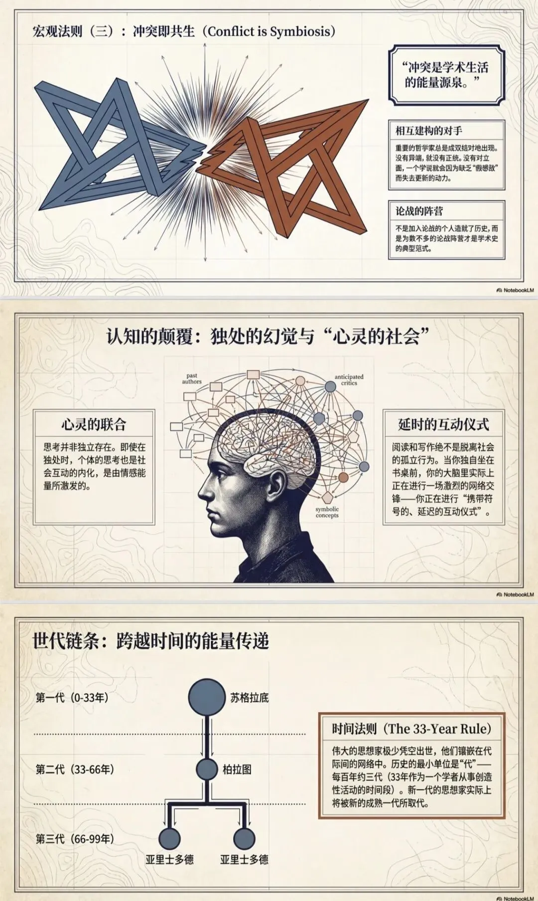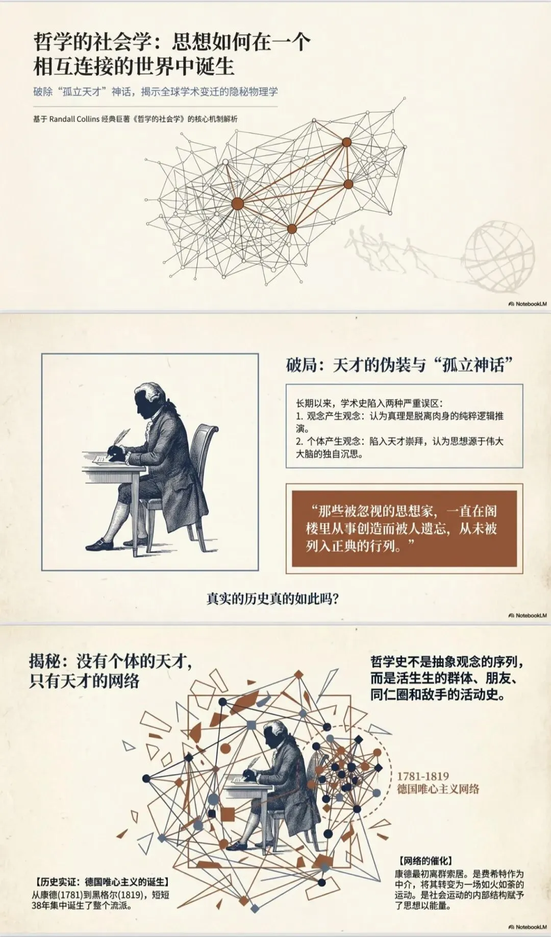 比如我把一本有关如何在不同时代成为有影响力的天才的大厚书上传给它,然后直接使用它的一键生成展示幻灯片的功能,几分钟后,它就神笔马良: