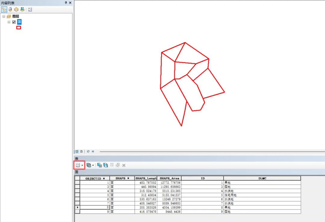 2.保留一个唯一匹配字段:比如"ID、地块编号"等,矢量图层属性表和Excel必须有这个字段