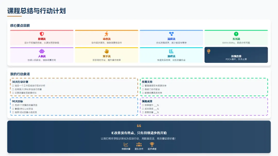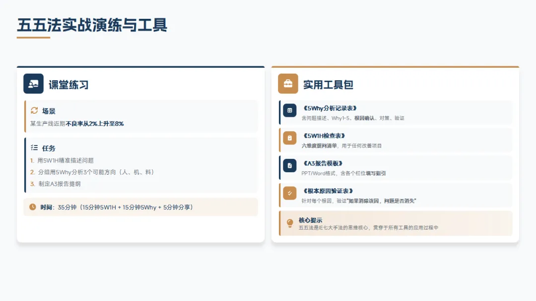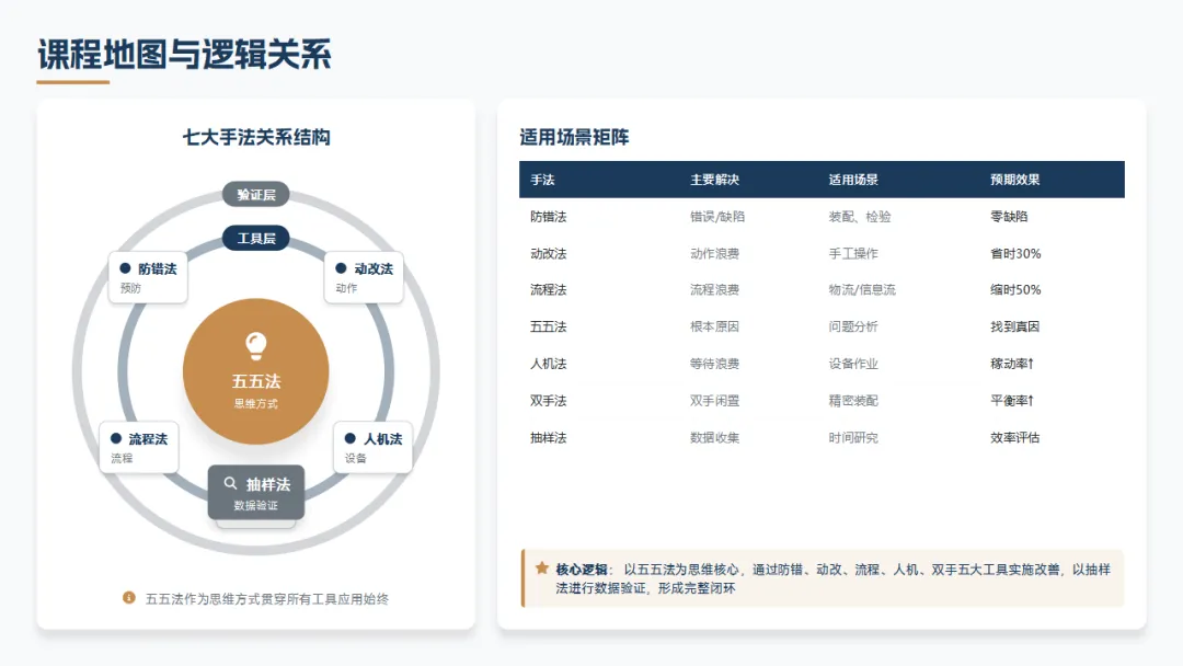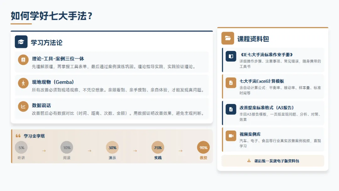 掌握七大手法,就像医生掌握手术技能,能够精准诊断现场问题,实施有效改善。理论指导实践,实践验证理论,两者缺一不可。