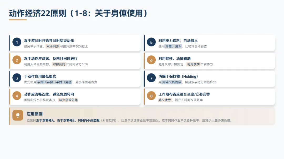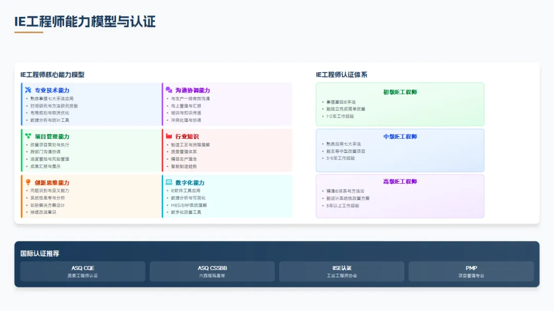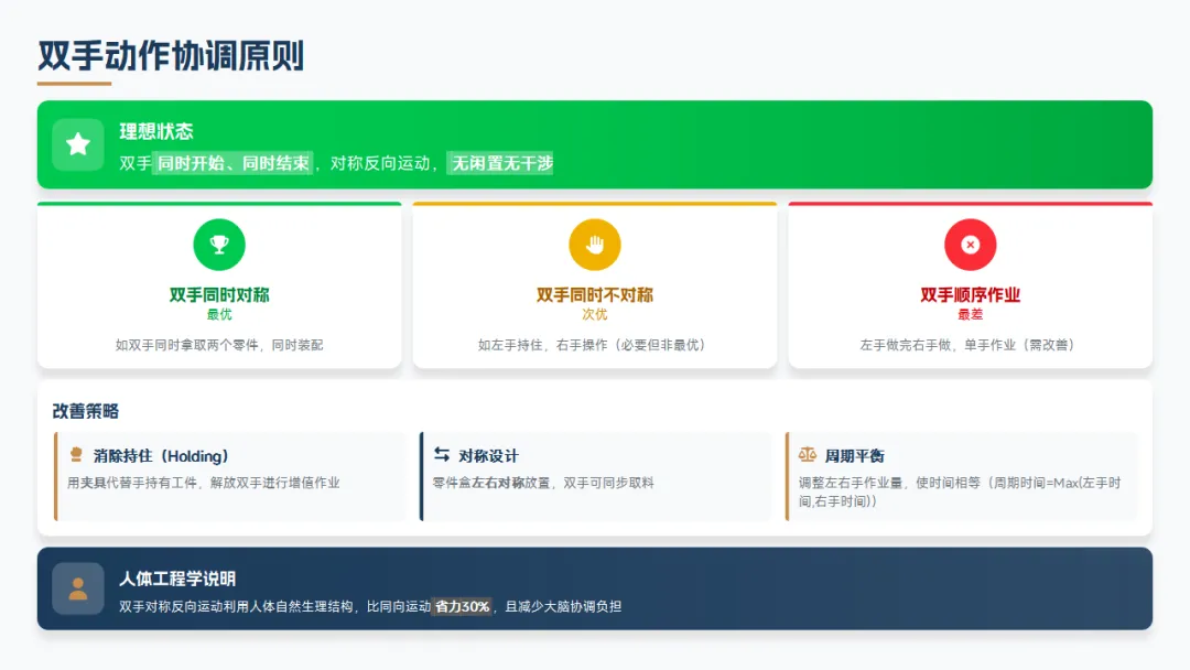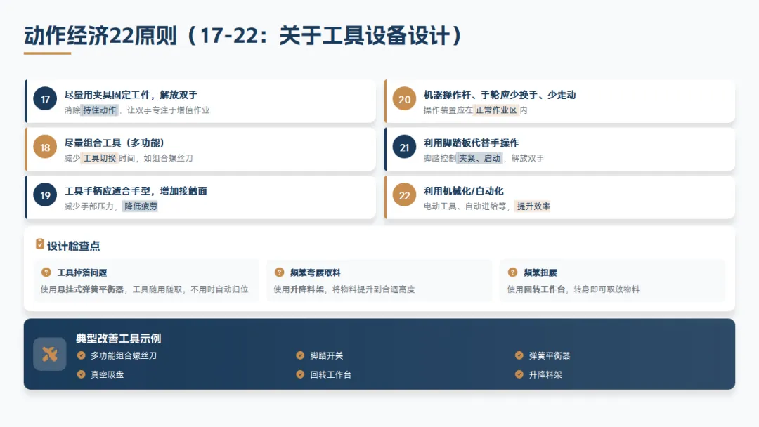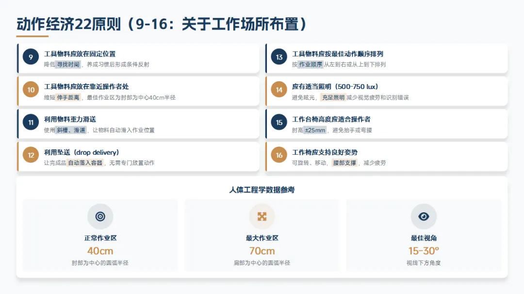 IE不是压榨员工的工具,相反,优秀的IE设计应该让工作更轻松、更安全、更舒适。我们关注人体工程学(Ergonomics),确保作业姿势合理、力度适中、环境舒适。我们倡导员工参与改善(Kaizen),因为最了解问题的人是一线操作者。