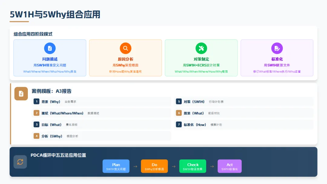 学习七大手法的正确姿势是:先理解原理(为什么要这么做),再掌握工具表单(怎么做),最后通过案例演练巩固(实际应用)。三者缺一不可。只学理论会变成空谈家,只学工具会变成机器人,只看案例会变成评论家。
