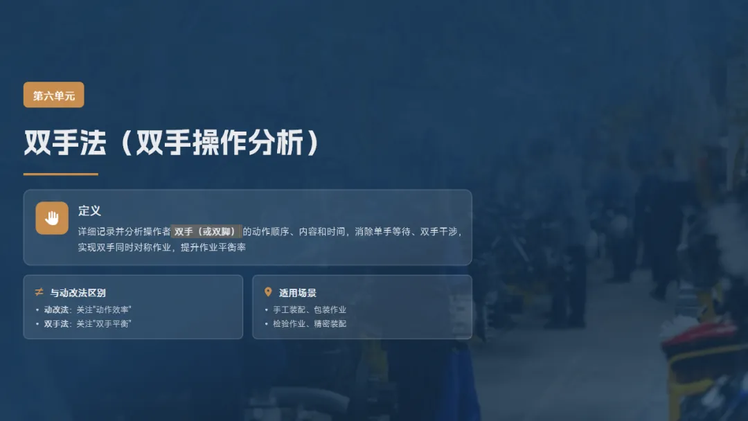 打个比方,IE是一门医学,七大手法就是手术技能。您可以说您懂医学理论,但如果不会开刀,就无法救治病人。七大手法就是IE工程师的"手术刀",是在现场诊断问题、实施改善的具体落地工具。