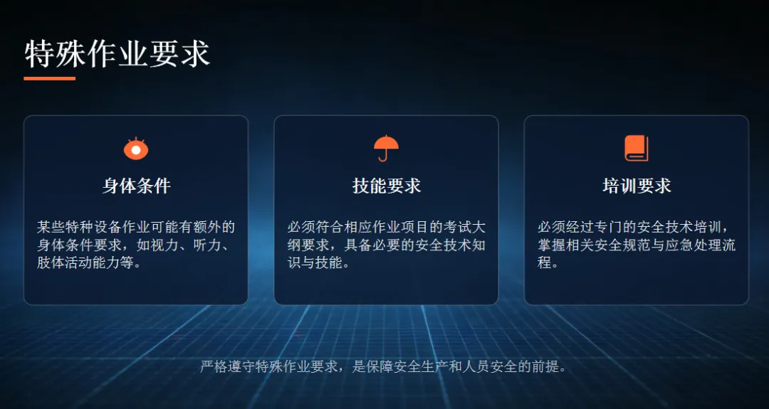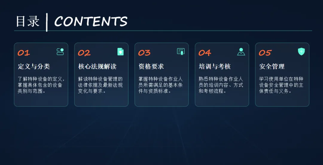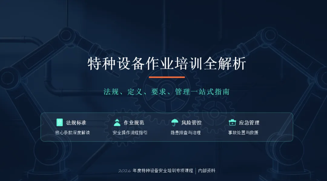 这份PPT,通过对特种设备作业相关要求和规范的全面解读,助力您构建起完备且精准的知识体系,为您在安全管理工作中注入强大的力量,指引您筑牢特种设备作业的安全防线。现在,就让我们一同开启这场探索之旅,深入洞悉特种设备作业的奥秘。关注:“安全知识充电站”,获取完整PPT。
