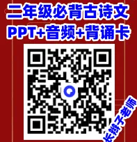 我自己上课也用这套课件,很实用,很好用。今天和大家分享的这套“统编教材(二年级)必背古诗文PPT+音频+《每日古诗文背诵卡》”。若需要,可以长按(或扫描下方二维码,直接提取!
