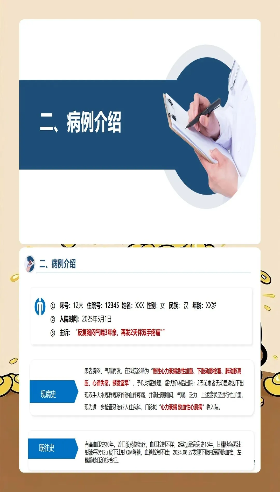 慢性心力衰竭急性加重期的护理评估需要全面系统,重点关注血流动力学状态、容量负荷情况、器官功能灌注和并发症风险。在呼吸功能评估方面,密切观察呼吸频率、呼吸深度、呼吸节律变化,记录呼吸困难程度分级,监测血氧饱和度和动脉血气分析结果。在液体平衡评估方面,准确记录24小时出入量,每日测量体重,评估水肿程度和分布范围,监测颈静脉怒张程度和肝颈静脉回流征。在心功能评估方面,持续监测心率、心律变化,观察有无心悸、胸闷等症状加重,评估心功能分级变化。在神经精神评估方面,注意观察意识状态、精神状态变化,警惕心源性脑灌注不足导致的认知功能障碍。在实验室指标监测方面,动态关注BNP或NT-proBNP水平变化,评估心功能恶化程度,监测电解质、肾功能、肝功能等指标,评估药物治疗的安全性。最新的护理实践推荐采用标准化的心力衰竭急性加重期评估工具,确保评估的系统性和可比性。