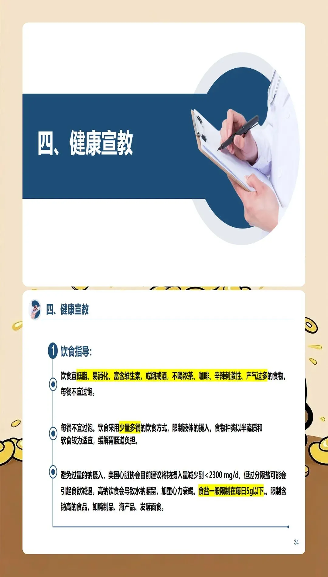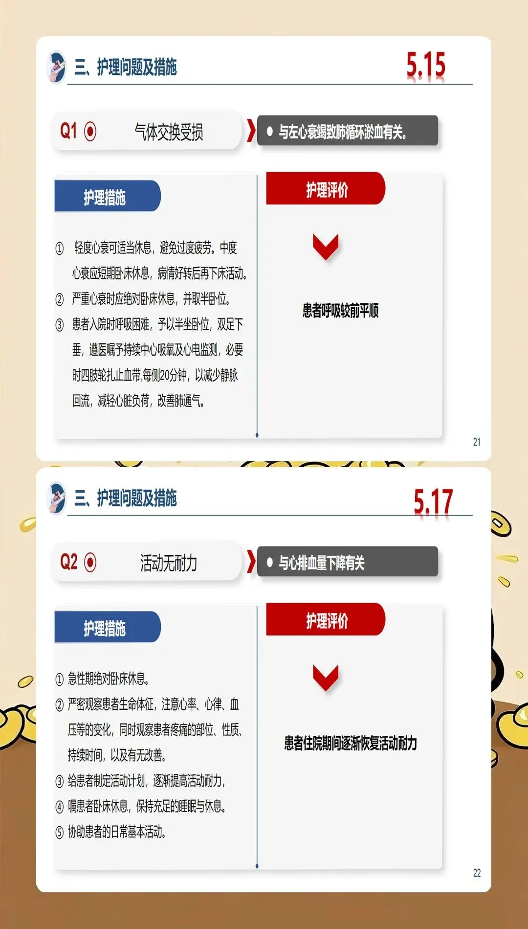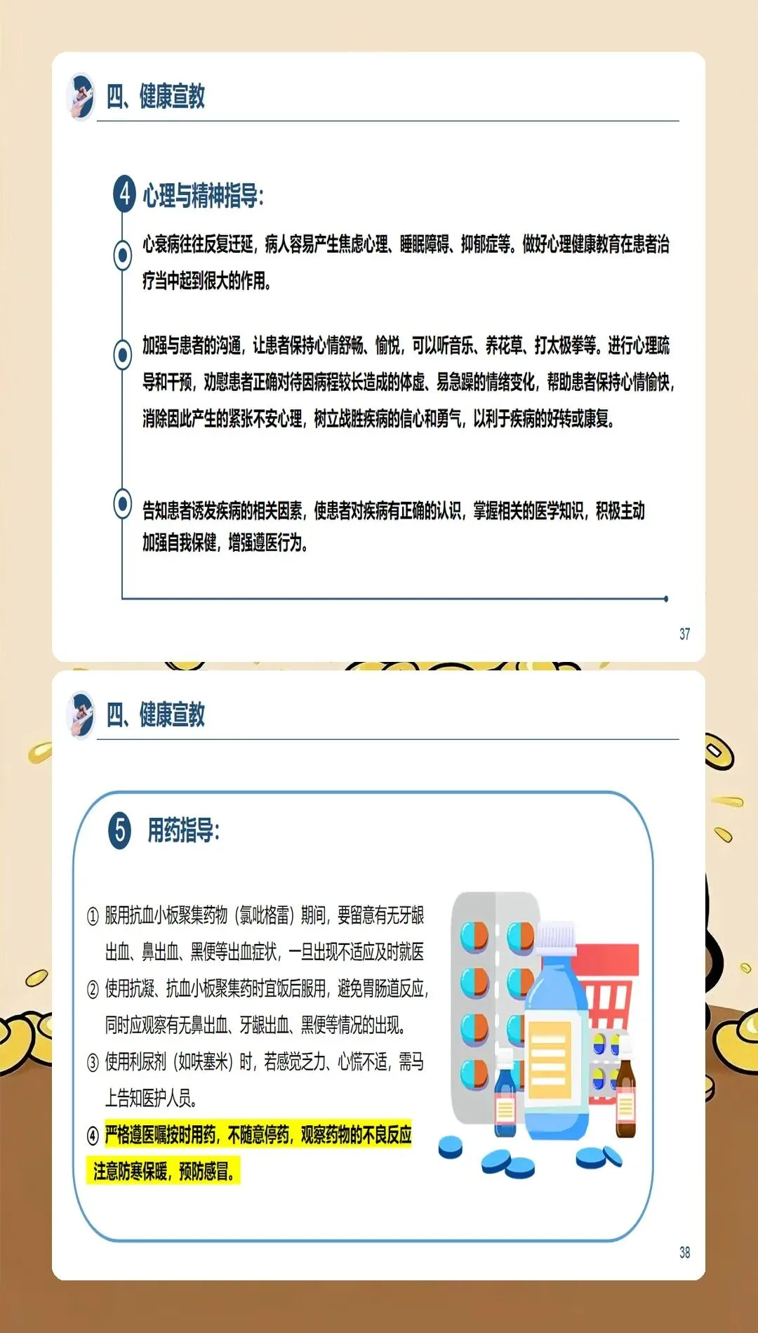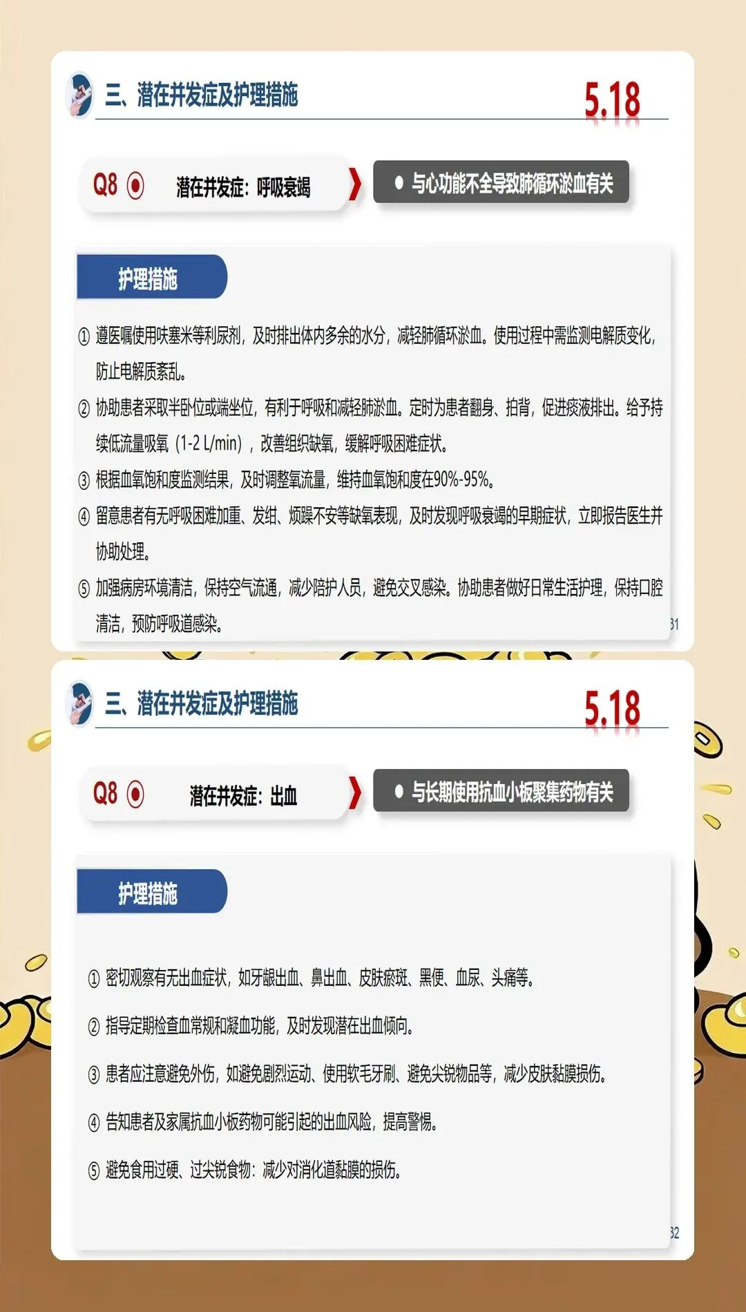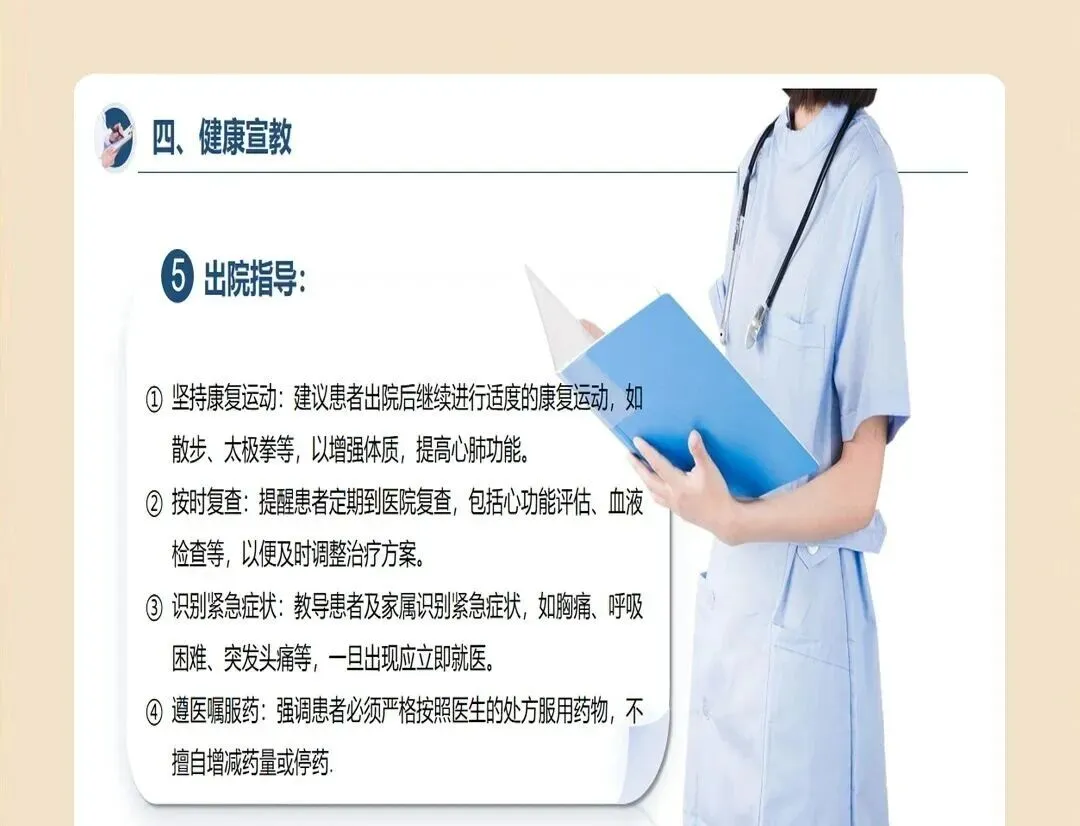 基于循证医学证据的急性期护理干预需要快速有效,重点解决呼吸困难和容量负荷过重的问题。在体位管理方面,协助患者采取半坐卧位或端坐位,双腿下垂以减少静脉回流,减轻心脏前负荷,同时使用床上桌支撑患者上身,减轻疲劳感。在氧疗护理方面,根据血氧饱和度调整氧流量,一般给予2-4L/min鼻导管吸氧,严重缺氧患者可给予面罩吸氧或无创正压通气,持续监测血氧饱和度变化。在药物治疗护理方面,准确执行利尿剂、血管扩张剂、强心药物等治疗,密切观察药物疗效和不良反应,特别注意利尿剂使用时的电解质变化和血管扩张剂使用时的血压变化。在出入量管理方面,严格限制液体摄入量,控制钠盐摄入,准确记录出入量,维持轻度负平衡状态。在心理护理方面,针对患者因呼吸困难产生的焦虑恐惧情绪,给予心理支持和安抚,讲解治疗措施的效果和预后,增强治疗信心。临床研究表明,规范化的急性期护理干预可使呼吸困难缓解时间缩短,住院时间减少。