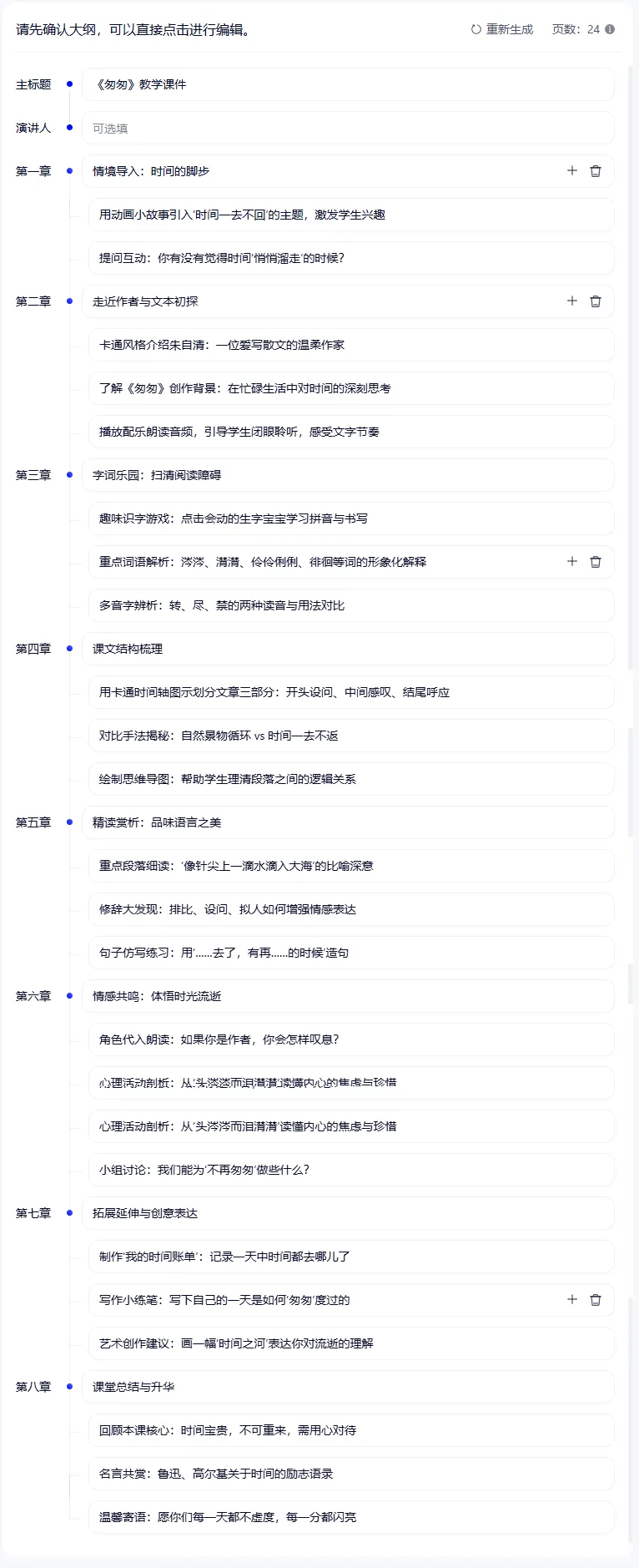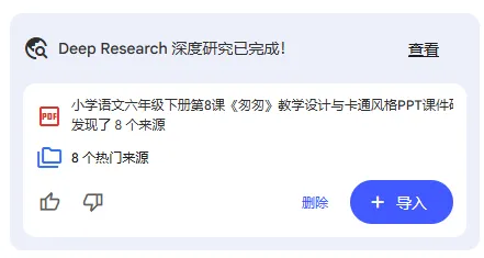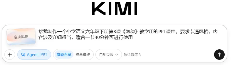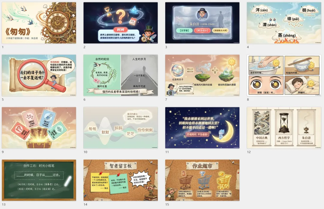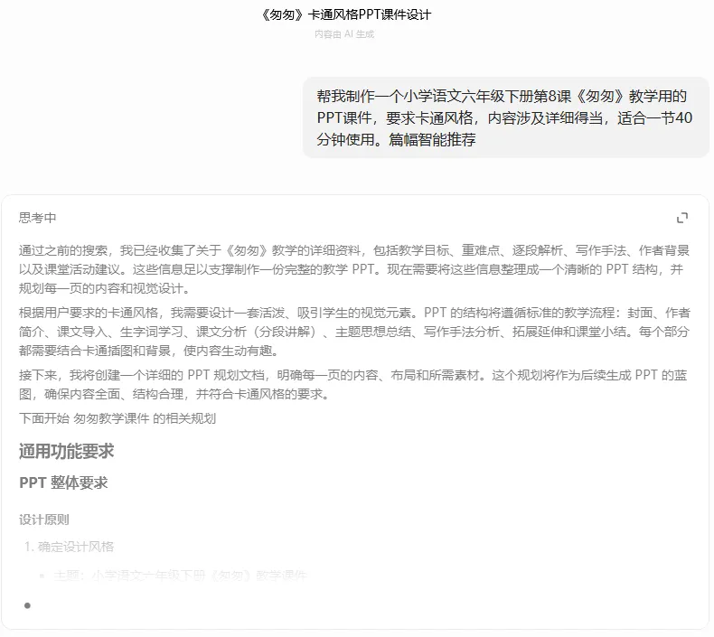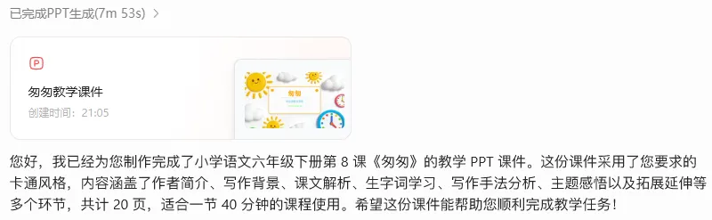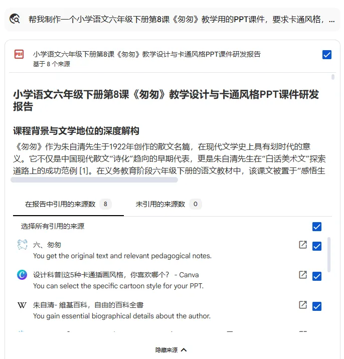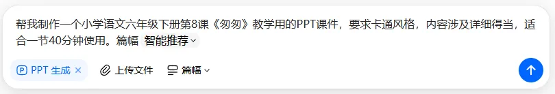 实操案例:让它们都来生成小学语文6年级下册第8课《匆匆》的课件。