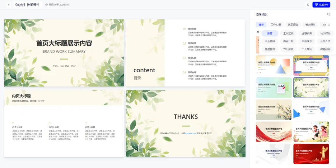 AI生成PPT演示
