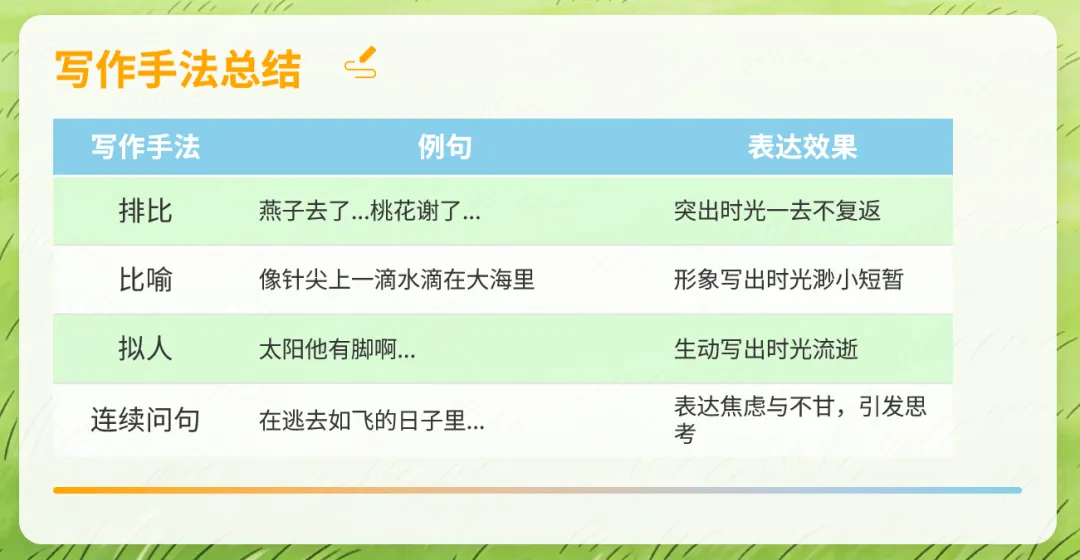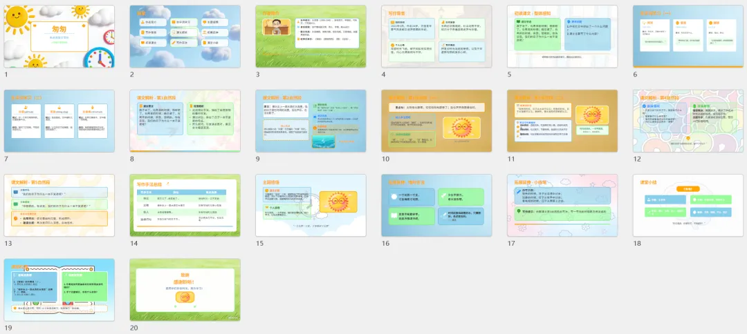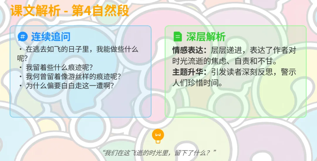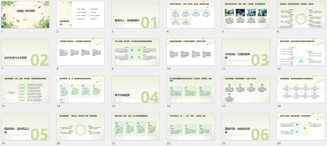 提示词:帮我制作一个小学语文六年级下册第8课《匆匆》教学用的PPT课件,要求卡通风格,内容涉及详细得当,适合一节40分钟使用。