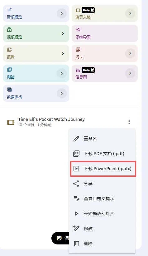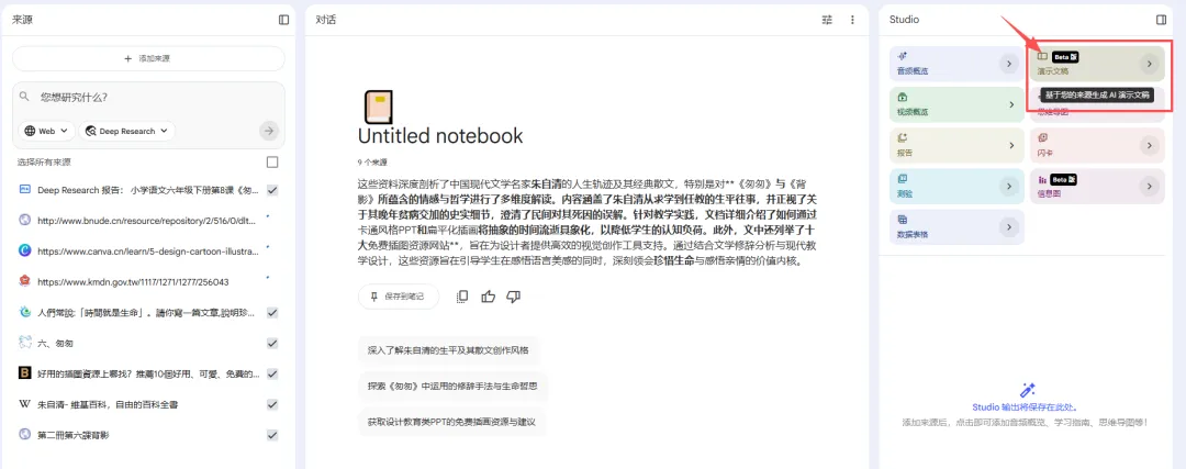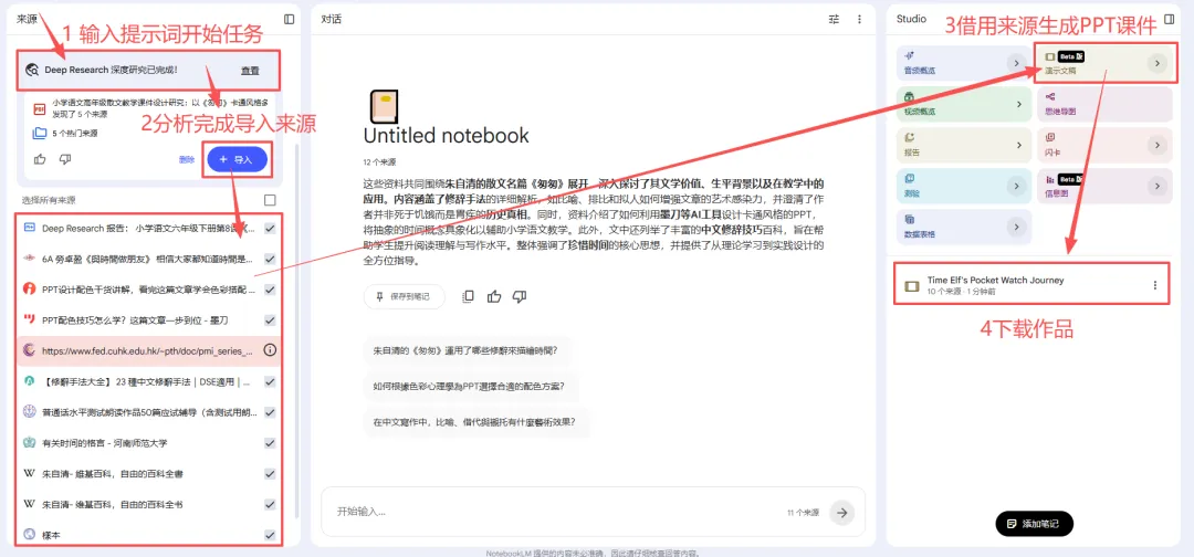 使用NotebookKLM生成PPT课件的流程: