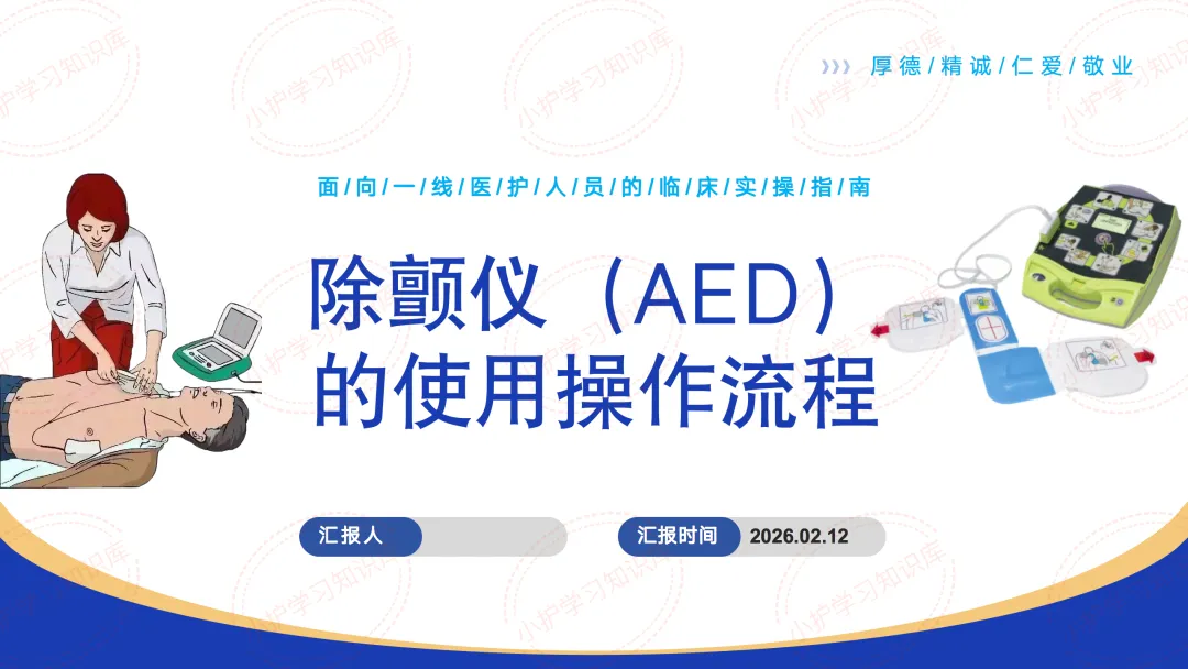 今天我们汇报的主题是“除颤仪(AED)的使用操作流程”。
