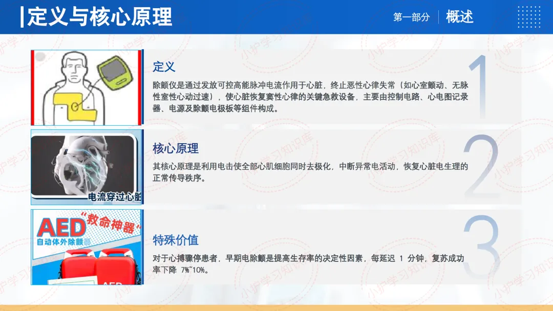 其核心原理是利用电击使全部心肌细胞同时去极化,中断异常电活动,恢复心脏电生理的正常传导秩序。