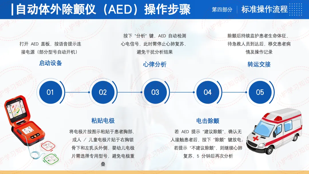 自动体外除颤仪(AED)操作步骤相对简化。