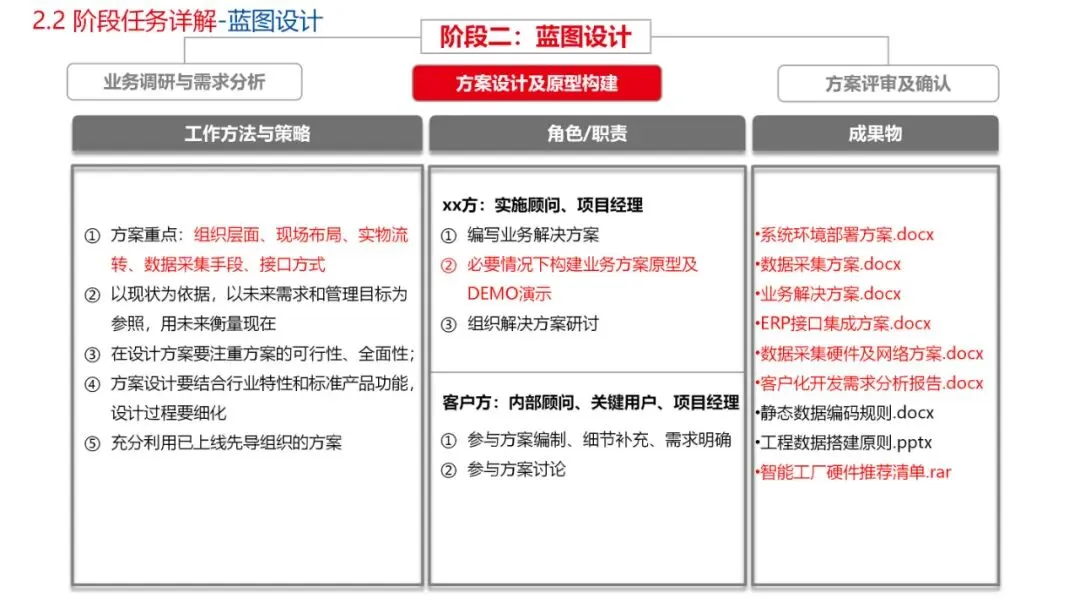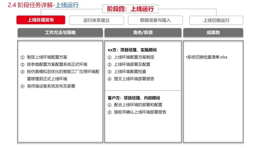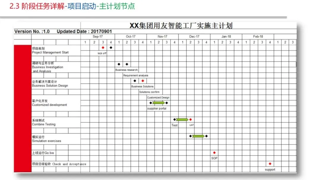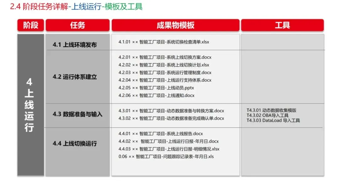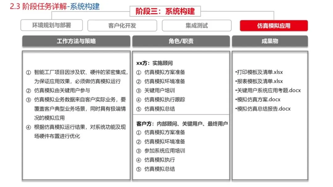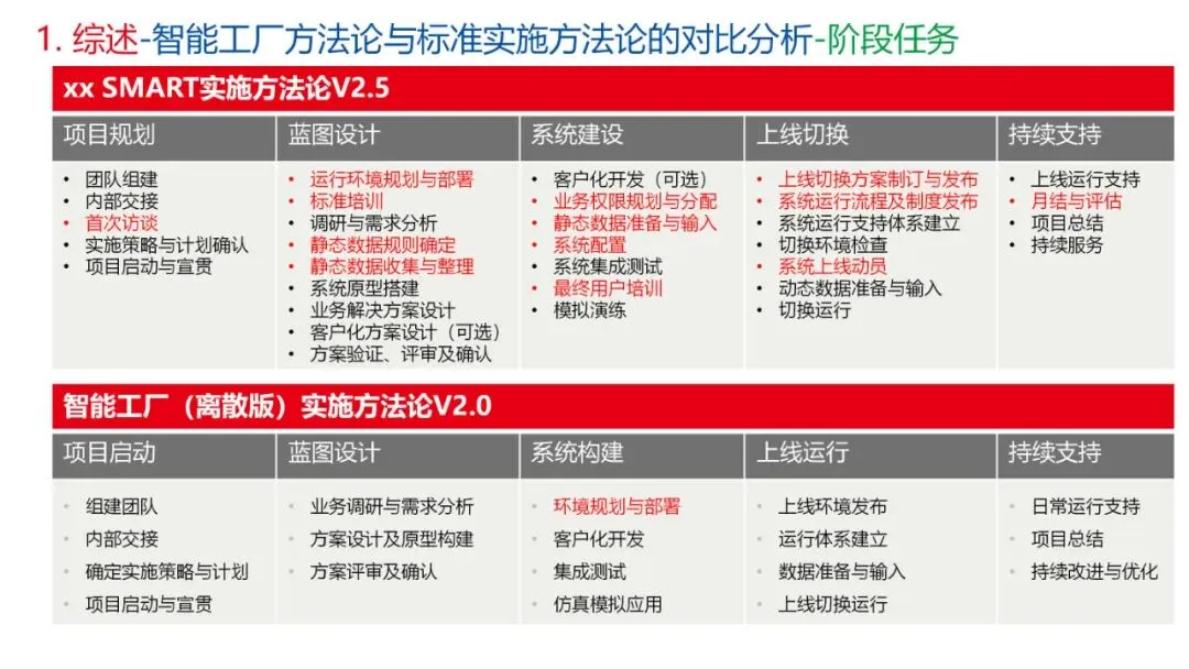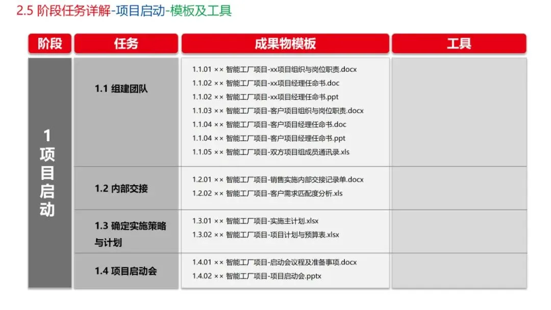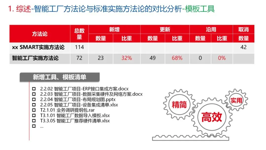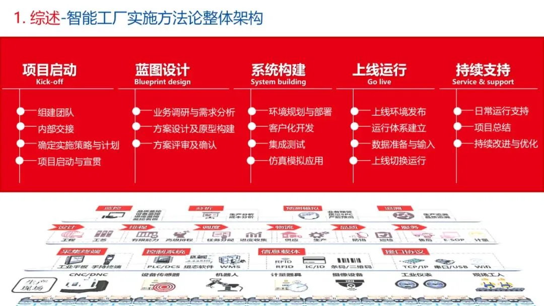 声明:本文内容来源于公众号“智能制造IMS”,版权归原作者所有(如侵权,扫描上方二维码联系删除)。风陵渡进行深度解读,欢迎大家转载分享。智能工厂(离散版)实施方法论通常包括以下关键步骤和要点:项目启动组建跨部门团队,明确职责与目标,制定实施计划。开展需求调研,梳理业务流程与痛点,确定项目范围与优先级。召开启动会,宣贯项目目标与计划,确保各方共识。蓝图设计基于调研结果,设计业务解决方案,涵盖生产流程优化、数据采集规则、设备集成方案等。构建数据模型与技术架构,确保系统兼容性与扩展性。通过原型演示与评审,验证方案可行性,减少后期变更风险。系统构建部署硬件设备(如工业平板、传感器、PLC等)与网络环境,确保数据实时采集与传输。开发定制化功能模块,集成ERP、MES等系统,实现数据互通。通过多轮测试(功能测试、压力测试、仿真模拟),确保系统稳定性与可靠性。上线运行制定切换方案,组织用户培训,确保操作人员熟练掌握新系统。进行数据迁移与初始化,完成系统上线切换,监控运行状态。建立运行支持体系,快速响应问题,保障系统稳定运行。持续支持定期评估系统效益,收集用户反馈,持续优化功能与流程。推动数字化转型文化,鼓励员工参与改进,提升整体运营效率。规划未来升级方向,如引入AI、大数据分析等技术,实现智能制造升级。关键成功因素:数据驱动:确保数据实时采集、分析与共享,支撑决策优化。设备互联:实现设备与系统的无缝对接,提升生产透明度。用户参与:从需求调研到上线运行,充分听取一线员工意见,减少阻力。灵活迭代:根据业务变化快速调整方案,适应市场动态需求。通过以上方法论,企业可逐步实现离散制造向智能化转型,提升生产效率、降低成本、增强市场竞争力。最近,我们拿到了一份来自用友的《智能工厂(离散版)实施方法论 V2.0》。这份91页的文档,与其说是一份标准手册,不如说是一套经过多个项目淬炼、极具实战价值的“敏捷化”工厂数字化实施框架。它没有停留在概念层面,而是直指落地痛点,尤其适合我们这些在一线摸爬滚打的数字化顾问。一、它是什么?一套“为交付而生”的方法体系这份方法论的核心,是IPM(Intelligent Plant implementation Methodology)。它并非凭空创造,而是在用友标准实施方法的基础上,针对智能工厂项目“软硬结合、现场为重、数据驱动”的特点,进行了深度补充和优化。其整体框架沿用了经典的五阶段论:项目启动 → 蓝图设计 → 系统构建 → 上线运行 → 持续支持。但每一个阶段的任务、交付物和关注点,都打上了鲜明的“智能工厂”烙印。从“流程梳理”到“现场优化”的视角转变:在蓝图设计阶段,它明确提出了“智能工厂现场优化建议”任务。这意味着,顾问不能只坐在会议室里聊流程,必须深入车间,对现场布局、物流动线、设备互联可行性提出建议。数字化方案必须与物理世界的改造同步规划,这是项目成功的前提。“三大解决方案”并重,技术架构前置:文档强调,蓝图阶段必须同步输出业务解决方案、数据集成方案、IT部署方案(含软硬件)。这打破了“先业务、后技术”的线性思维,要求顾问在方案设计初期,就必须通盘考虑网络、硬件、接口、云端部署等架构问题,避免后期颠覆性返工。仿真模拟成为“必选项”,而非“可选项”:在系统构建阶段,它把“仿真模拟”提到与开发测试同等重要的位置。因为智能工厂涉及人、机、料、法、环的实时联动,仅靠单元测试无法暴露系统性问题。必须用贴近真实的生产数据进行全流程“彩排”,才能检验数据流、硬件响应和异常处理的可靠性。清晰区分与ERP实施的本质差异:文档用专门章节对比了智能工厂与ERP项目实施的不同。核心指出:ERP重在表单与流程,以财务为核心;而智能工厂重在事件与实时,以制造现场为核心。这提醒我们,不能简单套用ERP的实施节奏和沟通方式,智能工厂需要更敏捷的响应、更关注秒级的数据时效性和海量数据处理能力。二、对顾问的实用启示:从“交付项目”到“交付价值”通读下来,这份材料给一线顾问提供了几个非常接地气的“行动指南”:项目初期,务必做好“需求匹配度分析”与“项目评估”:文档提供了具体的分析模板。智能工厂项目需求往往模糊且容易蔓延,初期必须与客户深入评估建设期望、资源成熟度、现场基础,并就项目范围、优先级和可行路径达成强硬共识,这是控制项目风险的“第一道闸”。组建跨领域团队,一把手工程不能虚:方法论强调项目团队必须包含业务专家、IT人员、设备技术人员,且客户方必须有一把手或能调动资源的负责人深度参与。因为智能工厂的改造往往涉及跨部门协作和现场作业习惯变革,没有强力推动,方案极易在车间层面搁浅。工具模板是效率利器,但需灵活运用:附件列出了70多个模板工具,从《布局规划图》到《数据采集硬件清单》,非常详尽。对于顾问而言,这既是宝库,也需警惕。关键不是填满所有模板,而是选取最核心的(如业务解决方案、接口方案、测试用例),将其作为结构化沟通和确认的载体,避免文档工作沦为形式。上线策略要“刚柔并济”:对于动态数据切换(如期初在制品),文档给出了务实建议:生产周期长的,未完工订单可在原系统继续,新订单切入新系统。这种“双轨并行、逐步切换”的思路,比强求一次