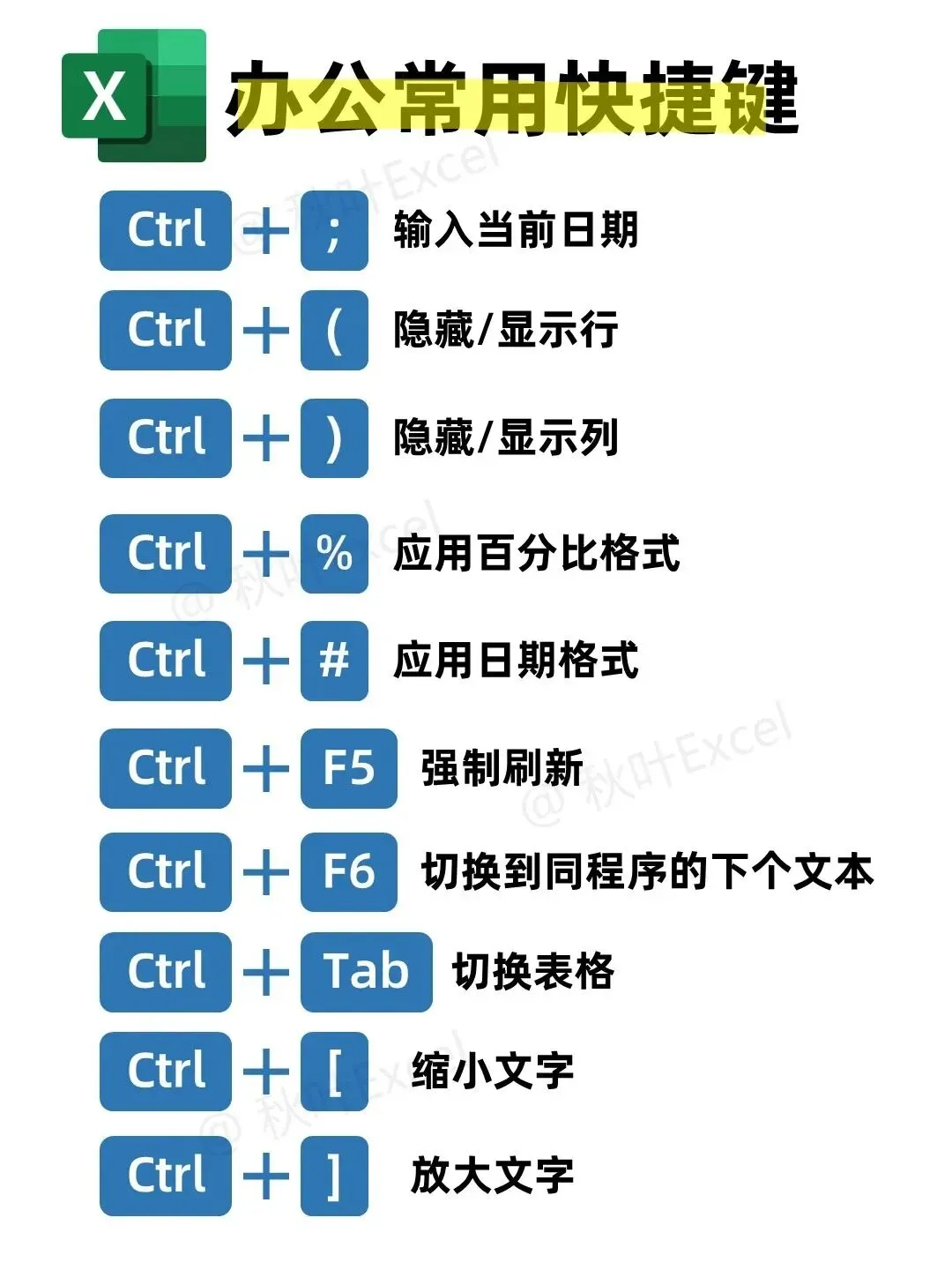 四、办公常用快捷键(Excel/Word专用)