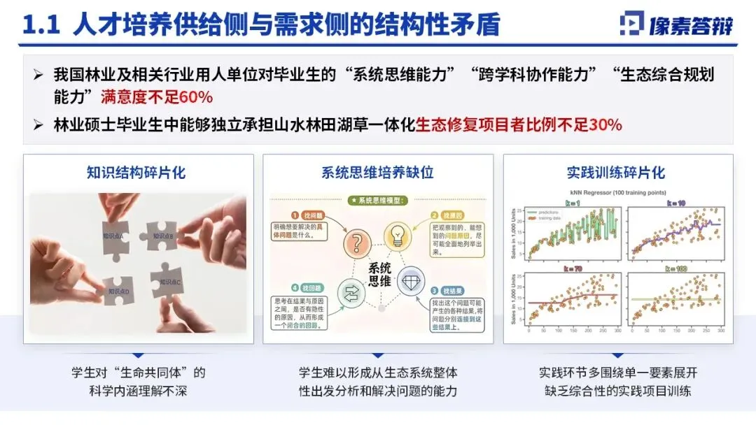培养短板明显:价值塑造悬空,生态文明理念与专业教育融合不足;知识结构碎片化,跨学科整合欠缺;实践训练单维,缺乏真实复杂场景训练。