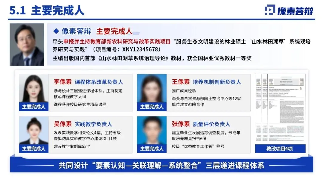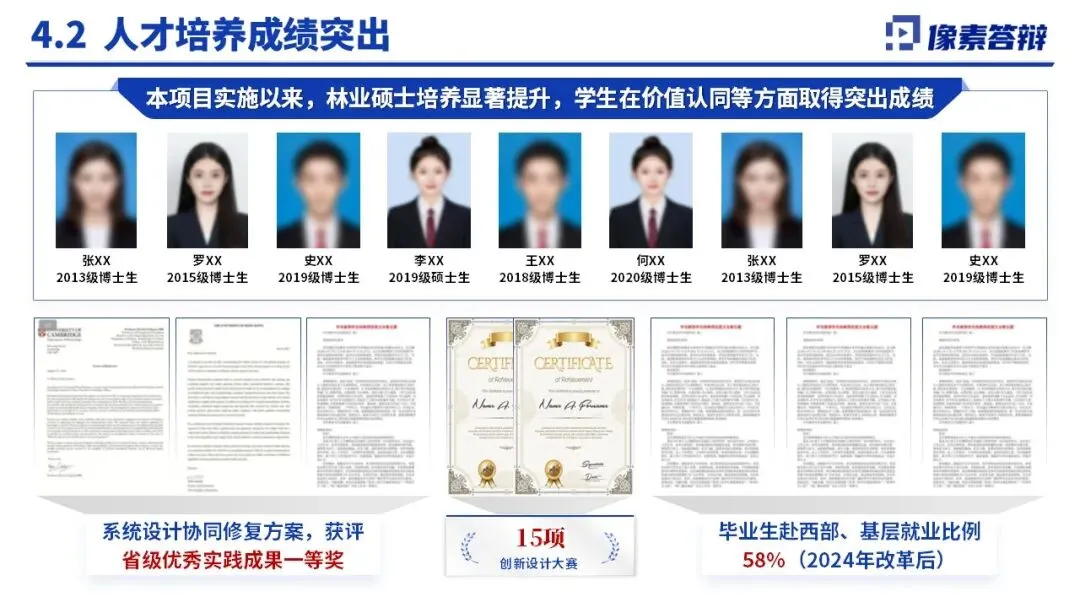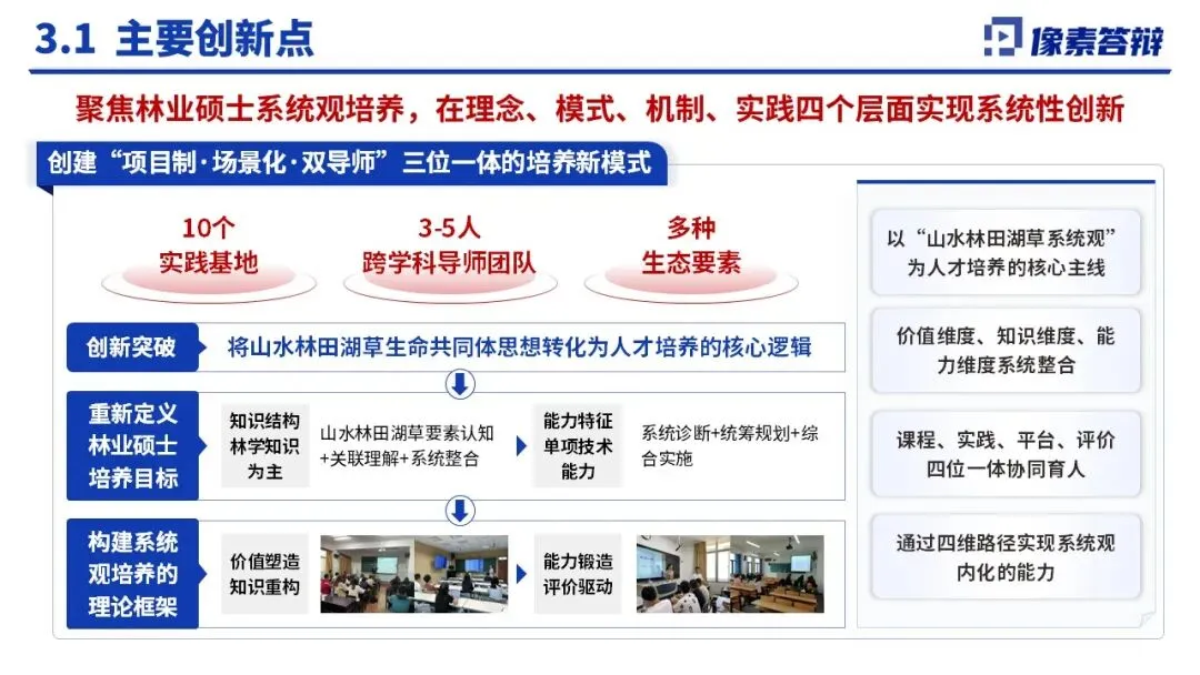 主要创新:首创 “项目制・场景化・双导师” 培养模式,将生命共同体思想转化为培养核心逻辑,重构林业硕士培养目标与课程体系。