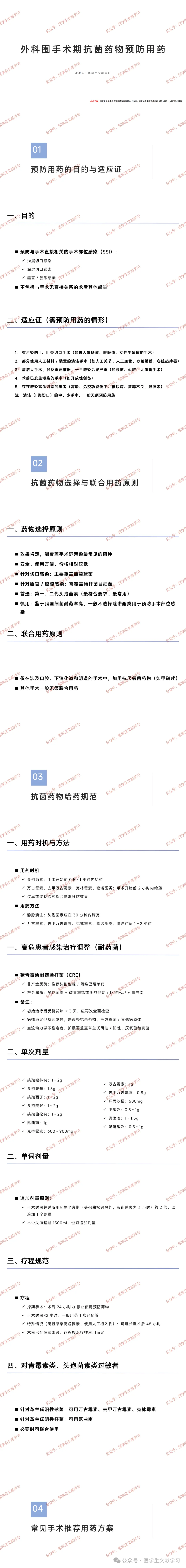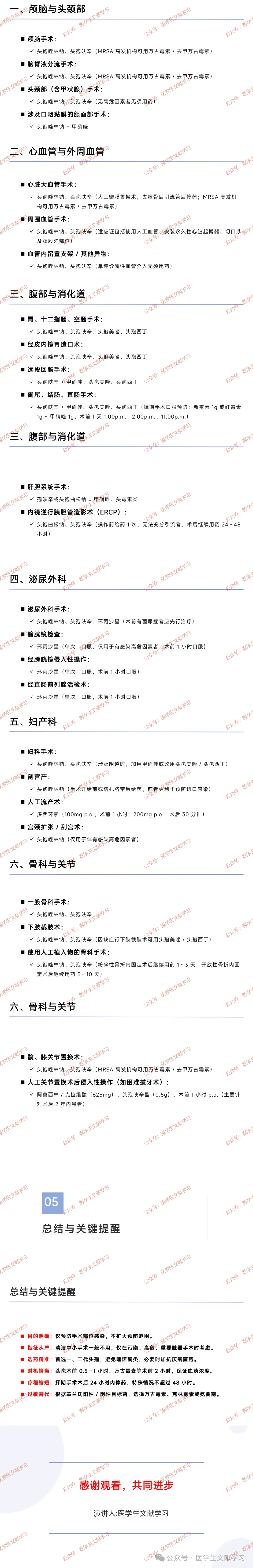 - 指征从严:清洁中小手术无需用药,仅污染、高危、重要脏器手术考虑;