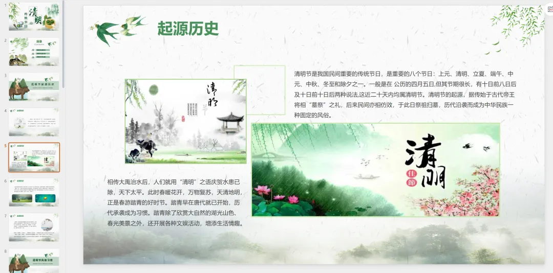 【清明节】课件PPT(含清明起源,风俗习惯,文学记录)可下载