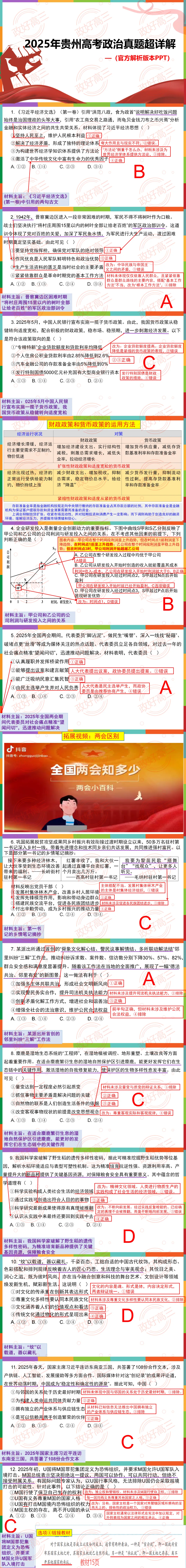 25年湖南高考政治官方答案超详解PPT