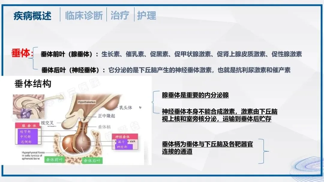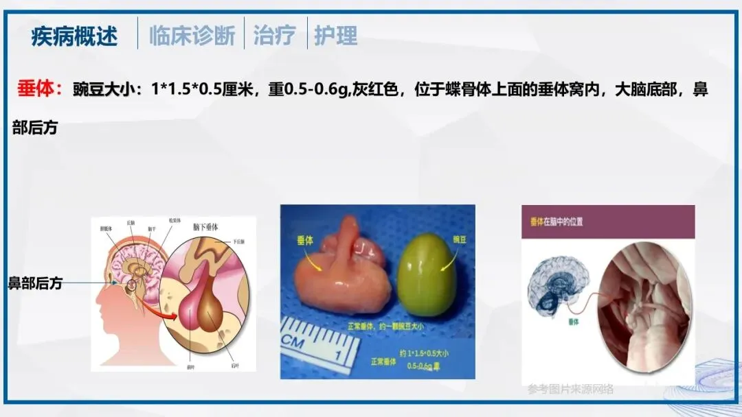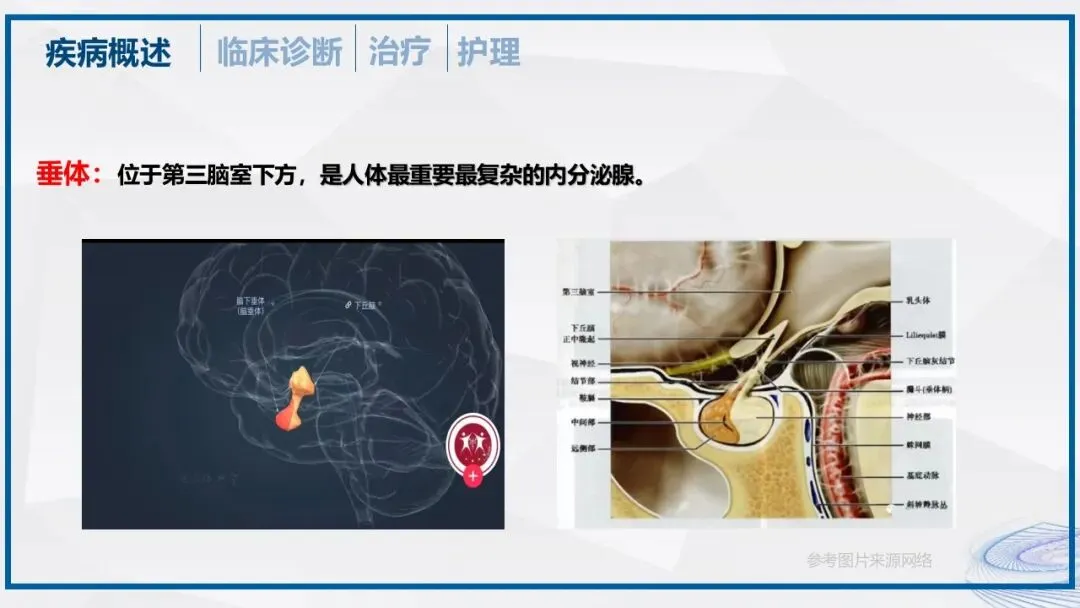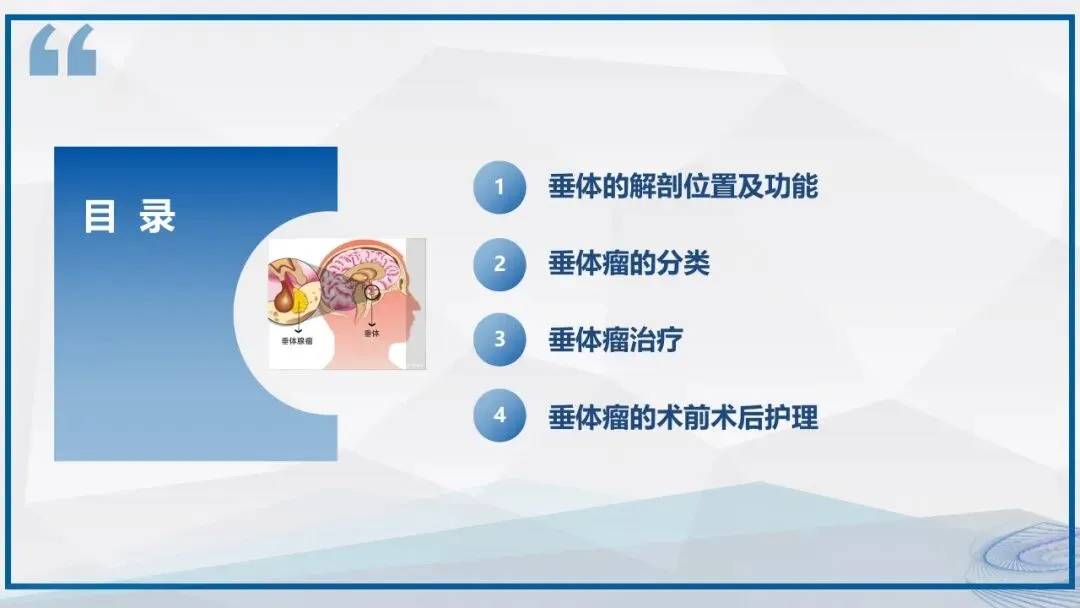 今天给大家整理了一套垂体瘤的治疗和护理完整 PPT,从垂体的精细解剖位置、结构功能,到垂体瘤分类、治疗方案,再到术前术后的护理要点,内容系统又全面。