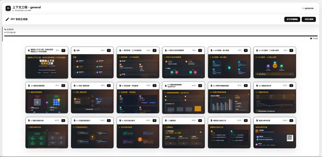 - 并行生成:支持多张幻灯片内容并行生成,显著提升创建速度。