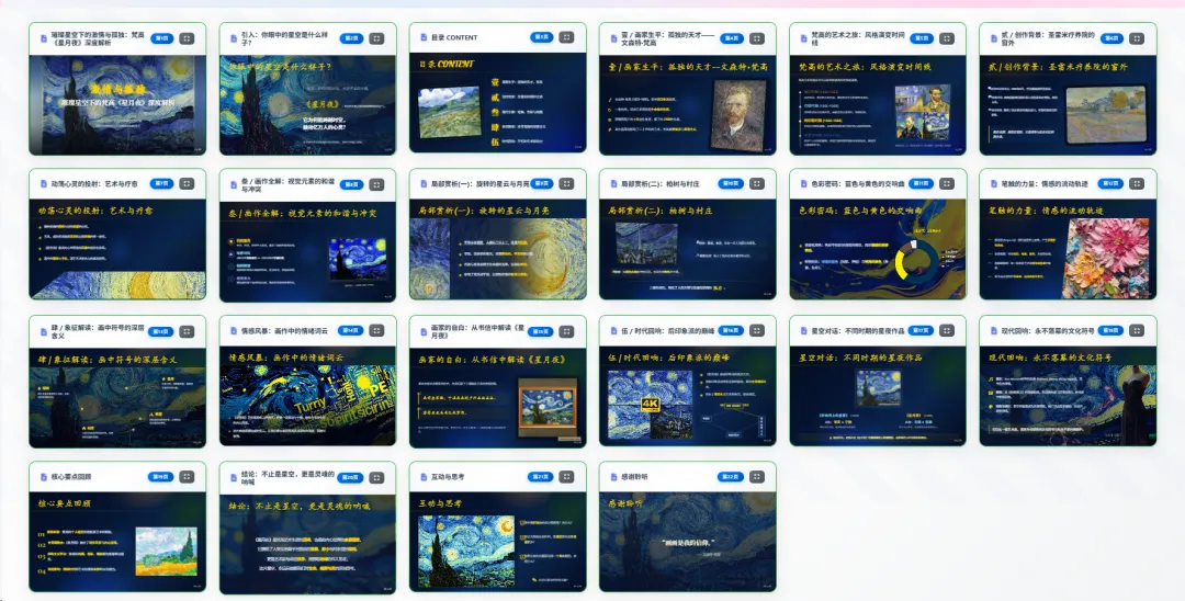 - 多样化布局:AI自动设计多种创意页面布局,避免了传统模板的单调。
