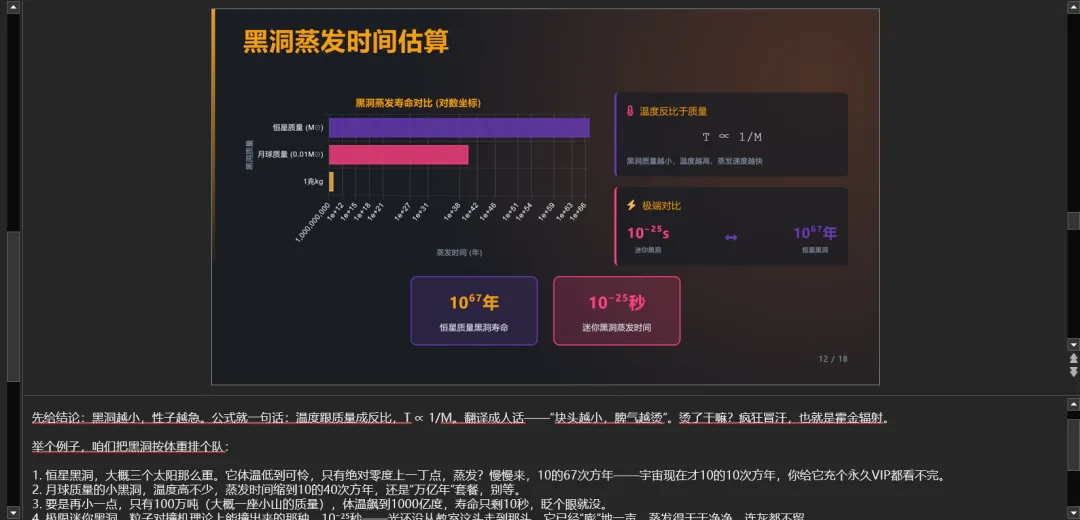 除了幻灯片内容,LandPPT 还能为每一页生成详细的演讲稿,让您的演讲更加从容。