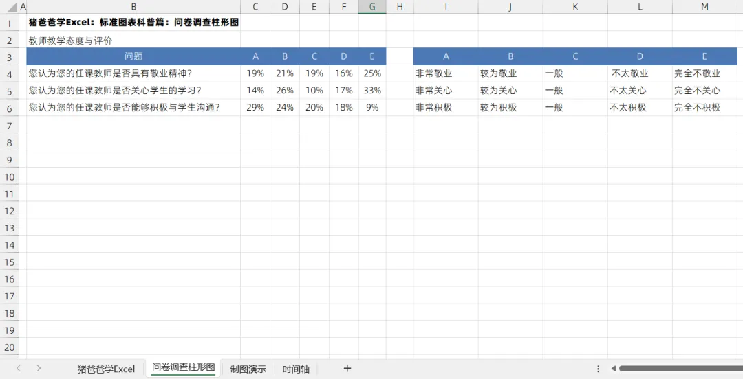 问卷调查柱形图|猪爸爸学Excel标准/基础图表