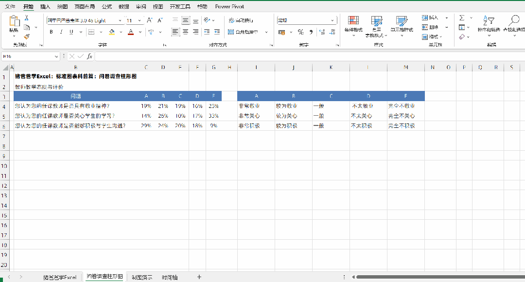 这一节是猪爸爸学excel标准/基础图表之问卷调查柱形图
