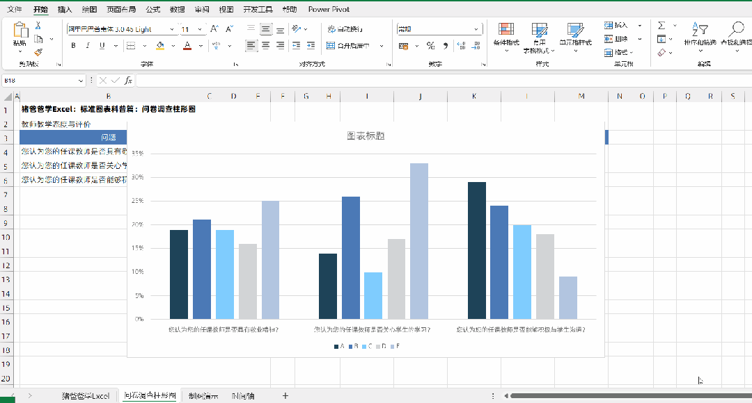 >问卷调查柱形图|猪爸爸学Excel标准/基础图表
