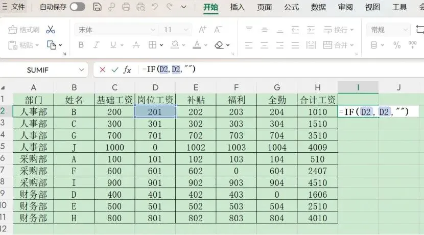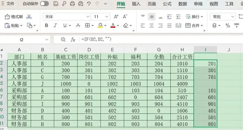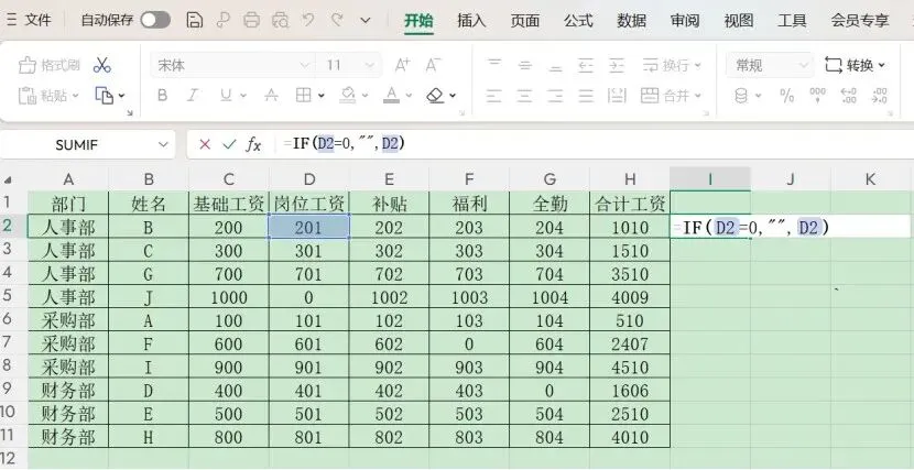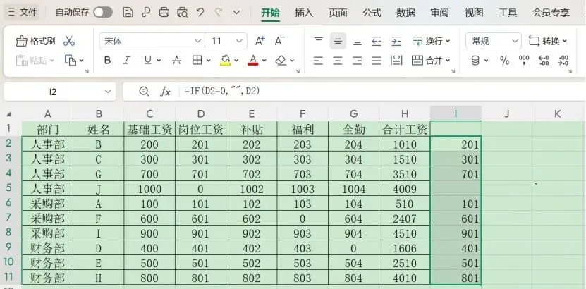 还有个公式 =IF(原单元格,原单元格,"") ,在I2空白单元格,输入公式=IF(D2,D2,""),也能隐藏0值。
