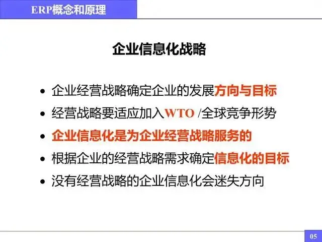 ·根据企业的经营战略需求确定信息化的目标·没有经营战略的企业信息化会迷失方向