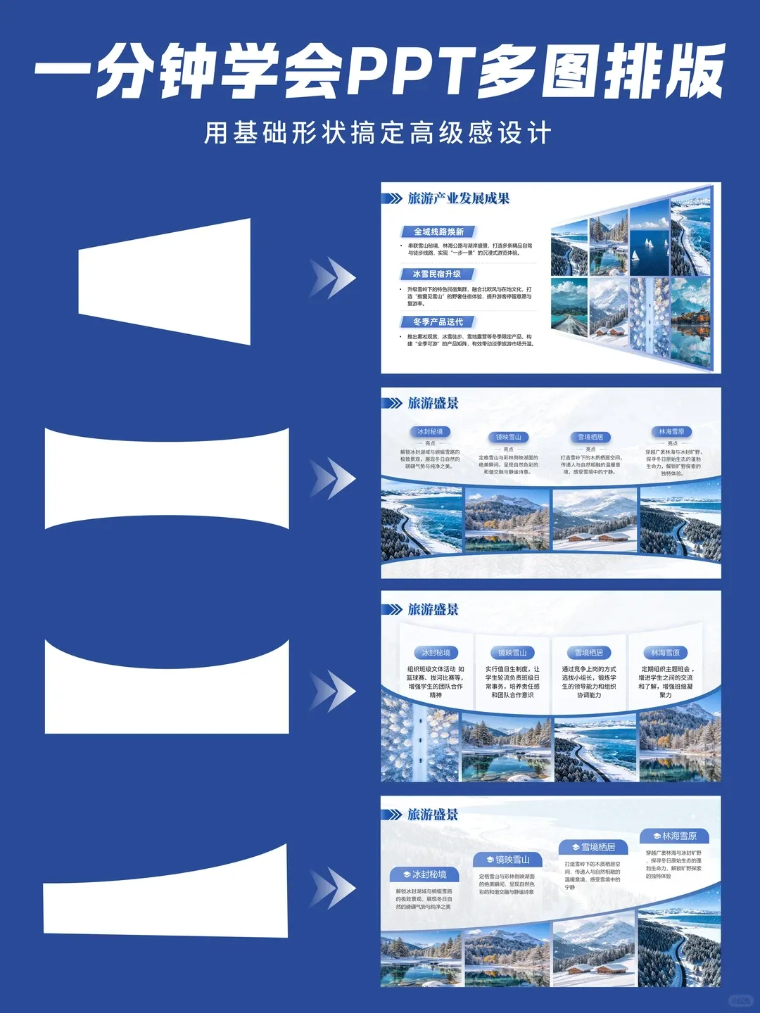 其实真不用纠结,也不用去装什么花里胡哨的插件,用好 PPT 自带的基础形状,分分钟就能把一堆图排得清爽又高级!