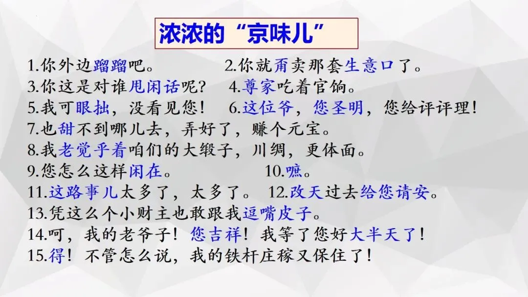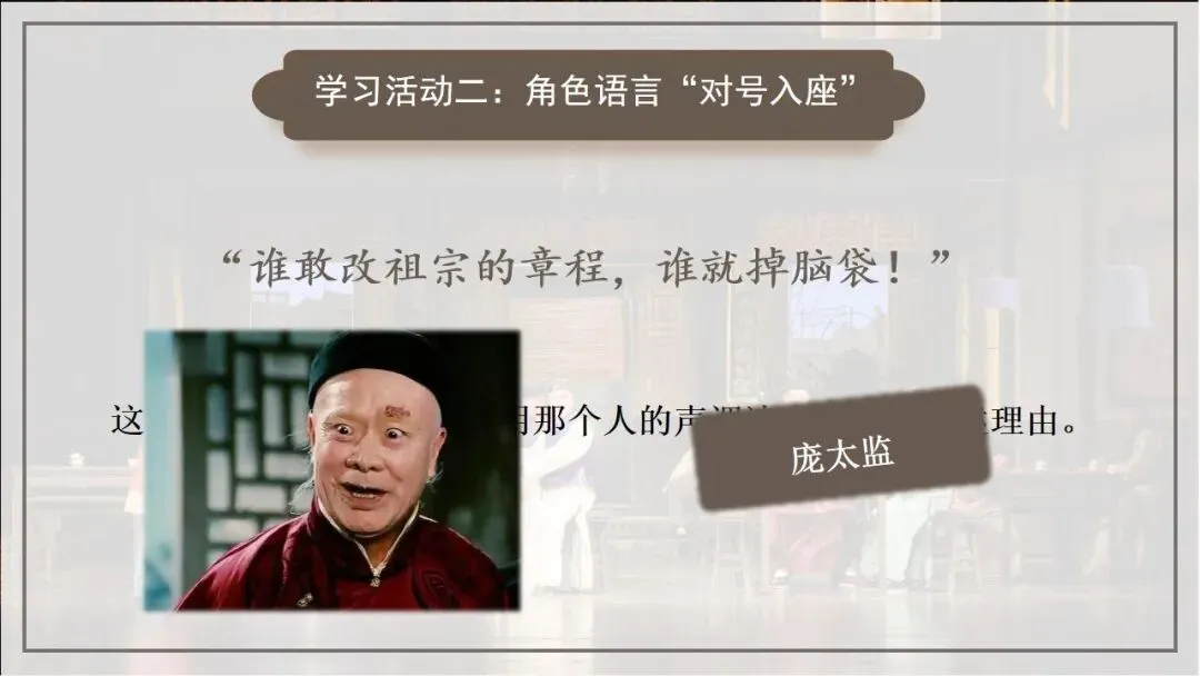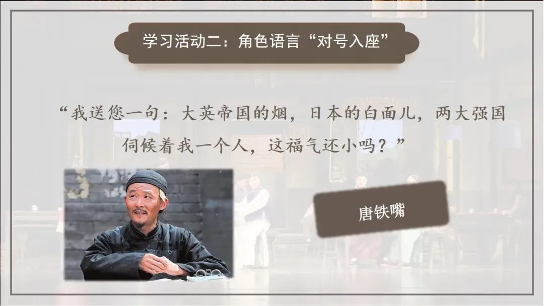 >品京味语言 观乱世沉浮——《茶馆》PPT(二)