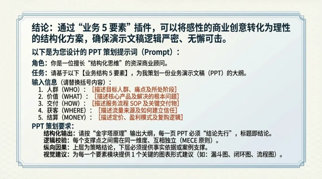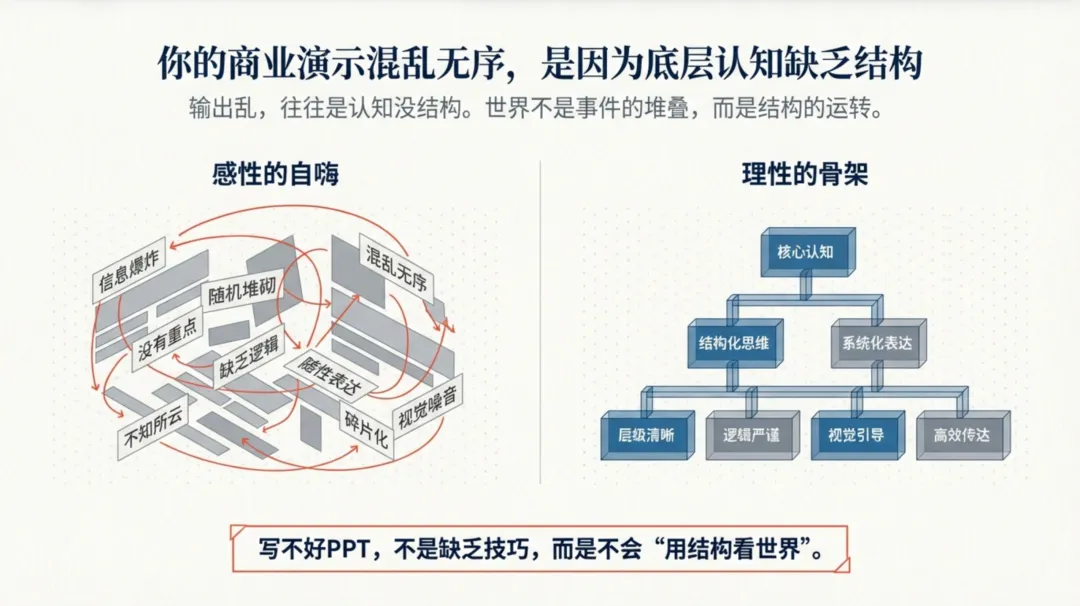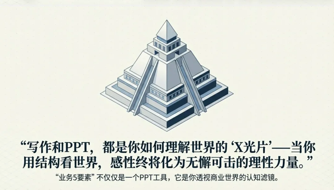 一套“用结构理解世界”的思维方式,看问题更清晰;一套可重复使用的写作 & PPT框架模板,提升输出质量;一次完整从“理解一个世界”到“写清楚、讲明白”的实战体验。