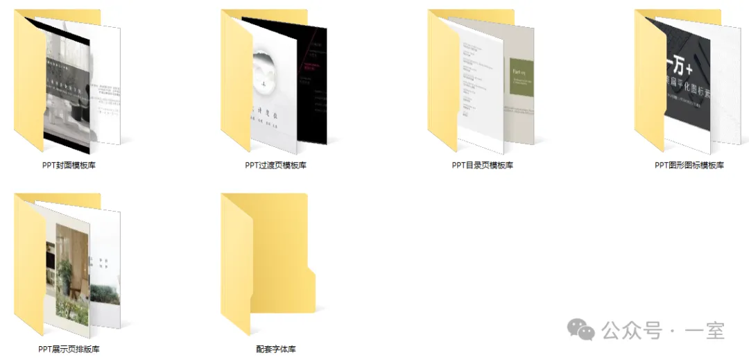 为了让大家在做PPT的时候事半功倍,今天小编收集整理了一套模板库,包含了封面、目录、过渡页、展示页、图形图标、字体等6大类,分类齐全。