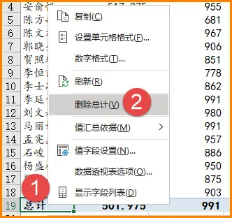 操作步骤:右键单击报表中的“总计”行→在弹出的菜单中选择【删除总计】。