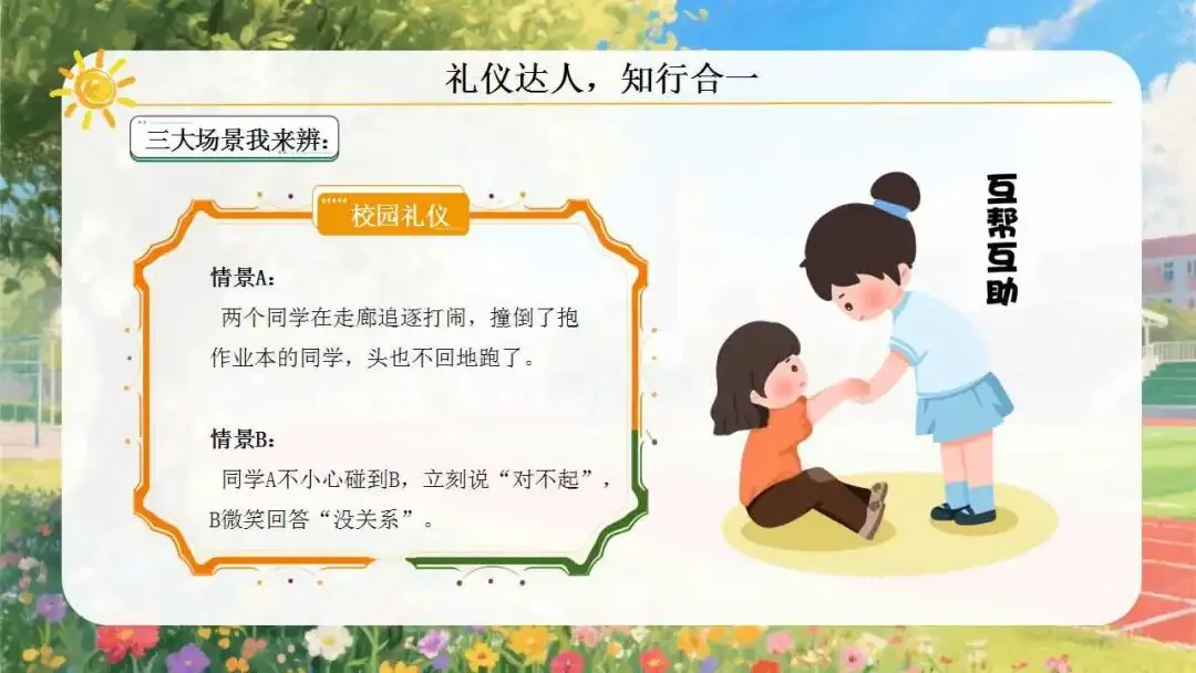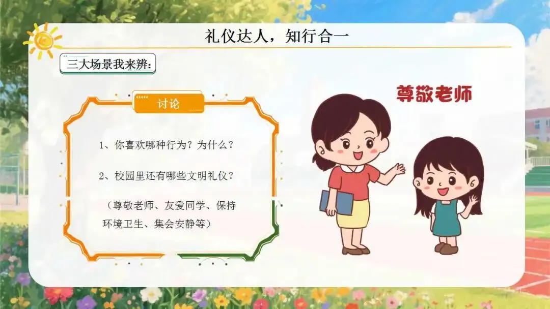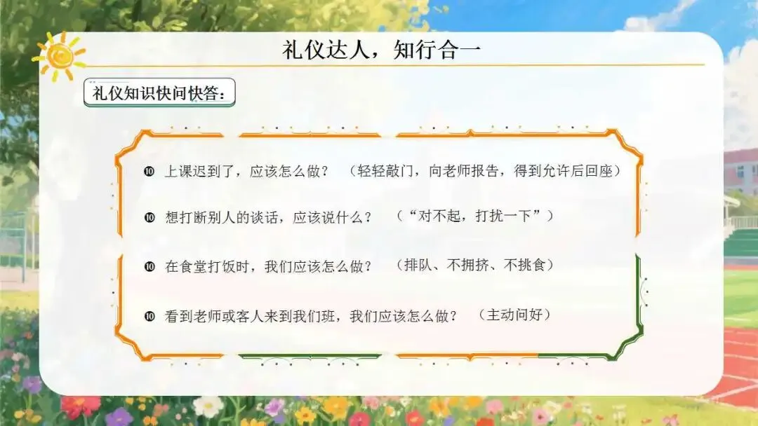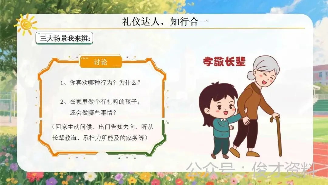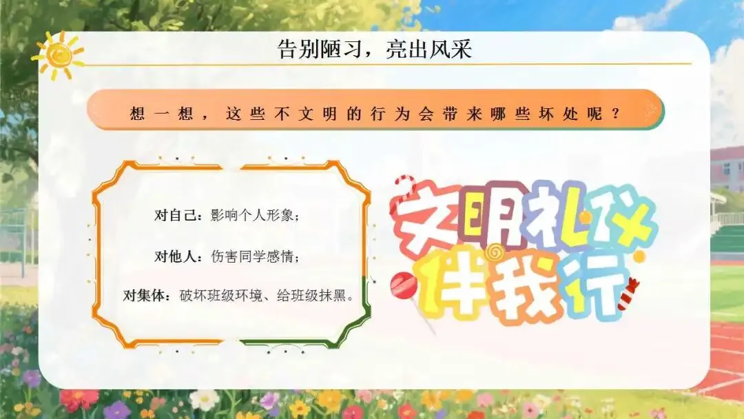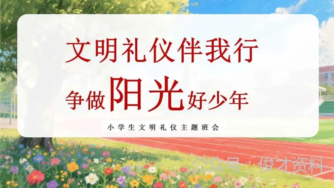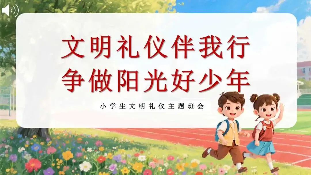 小学生文明礼仪主题班会ppt:文明礼仪伴我行,争做阳光好少年。