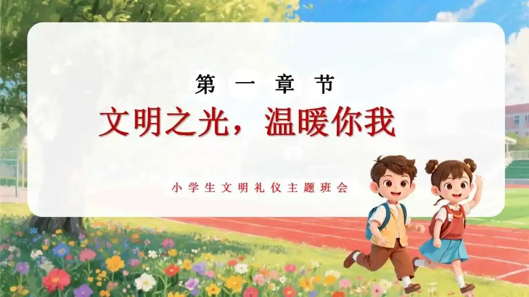 小学生文明礼仪主题班会ppt:文明礼仪伴我行.含教案、讲稿、视频、承诺树