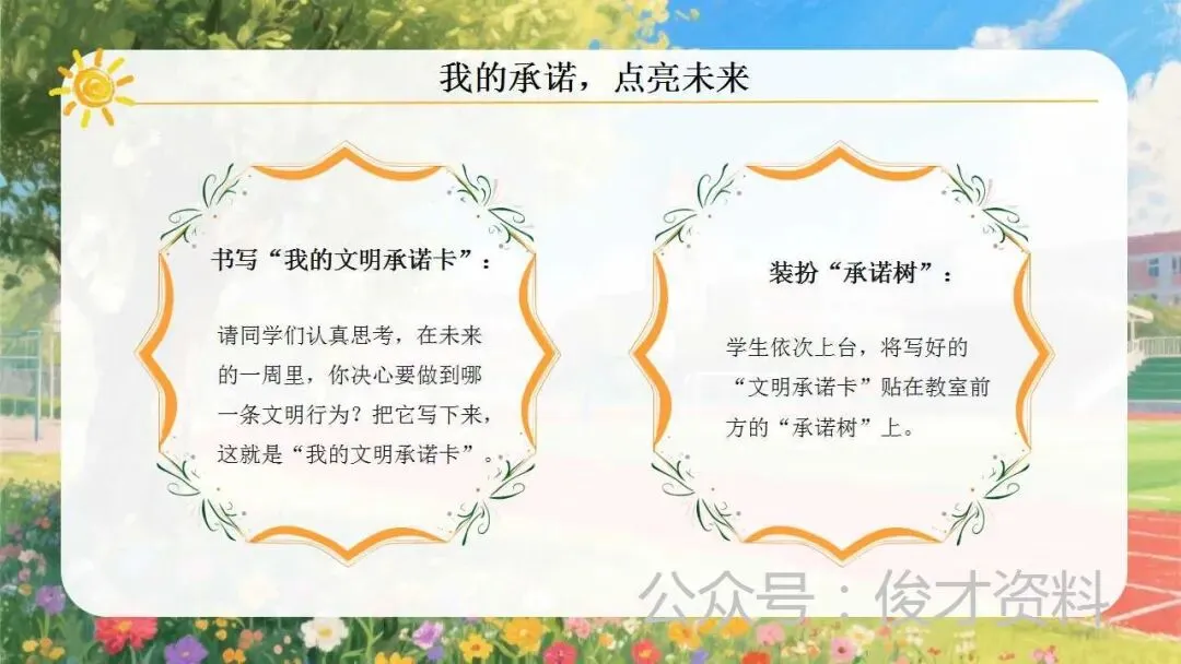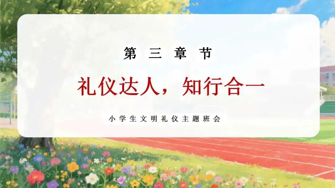 >小学生文明礼仪主题班会ppt:文明礼仪伴我行.含教案、讲稿、视频、承诺树
