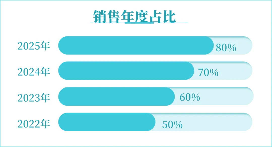 加一个像【销售年度占比】这样的主标题,再给整个图表套一圈浅蓝色边框。